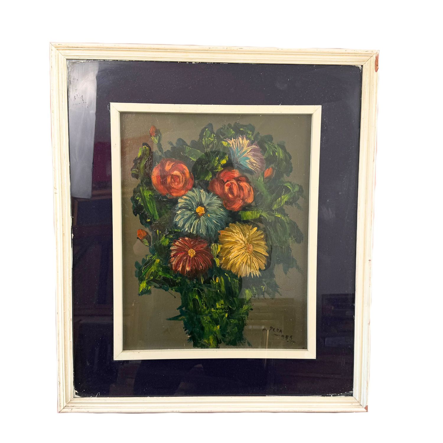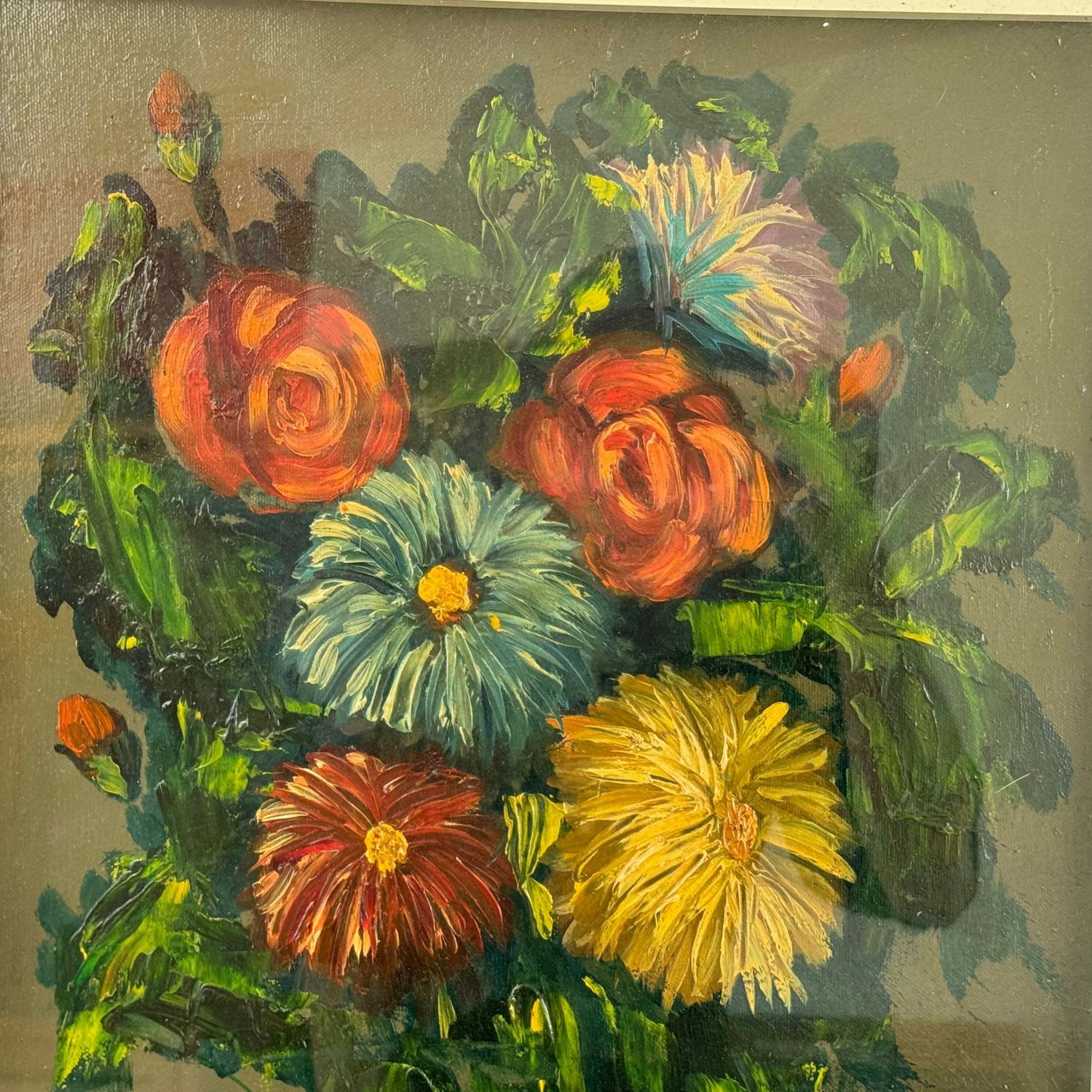 Dipinto olio su tela, periodo XX secolo scuola Italiana, raffigurante Vaso con fiori.