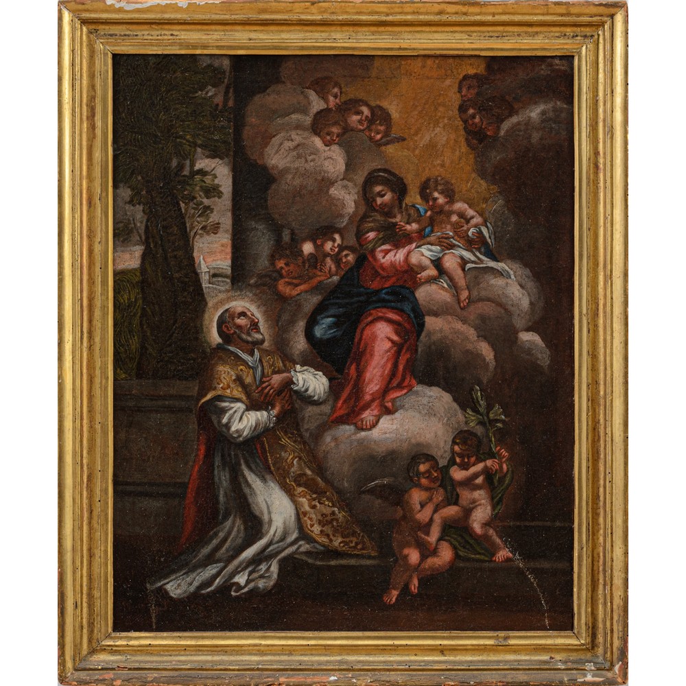 Madonna con Bambin Gesù e Santo in preghiera