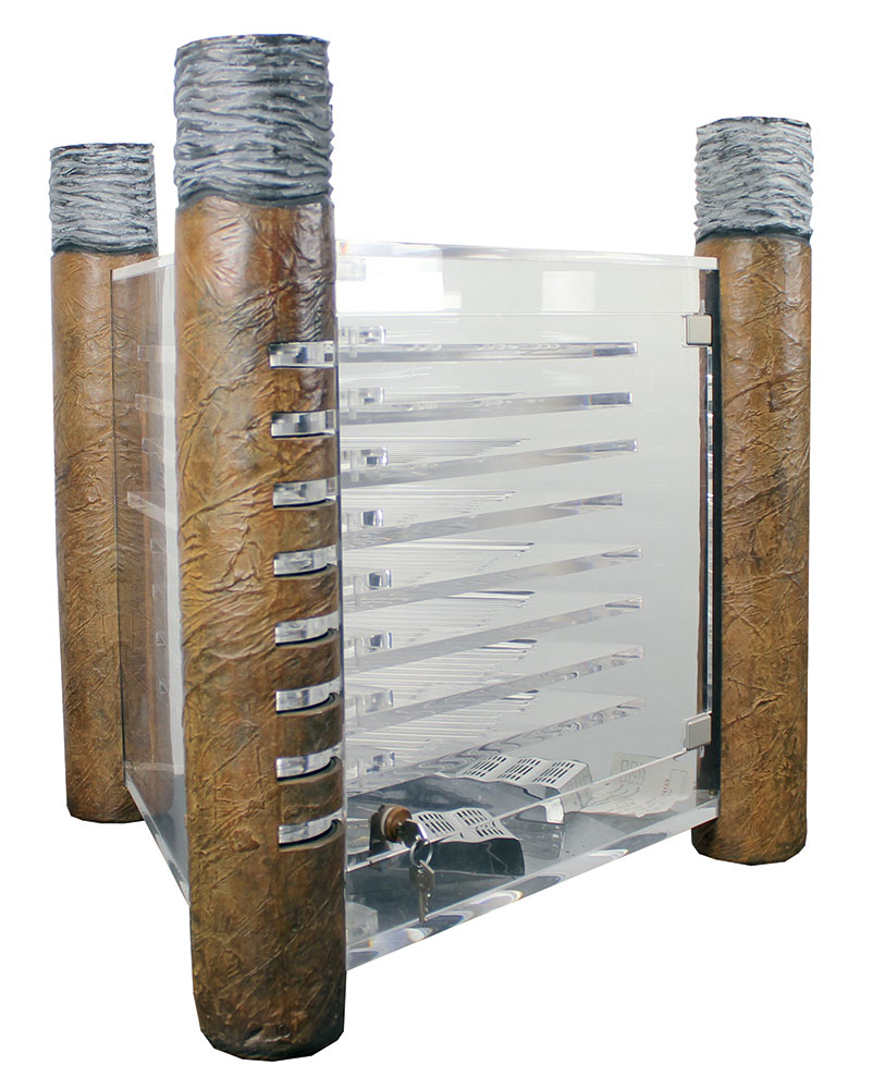 Lotto 1125 | Le Roux Gérard Tavolino Portasigari bronzo e plexiglass, cm. 63x63x69...