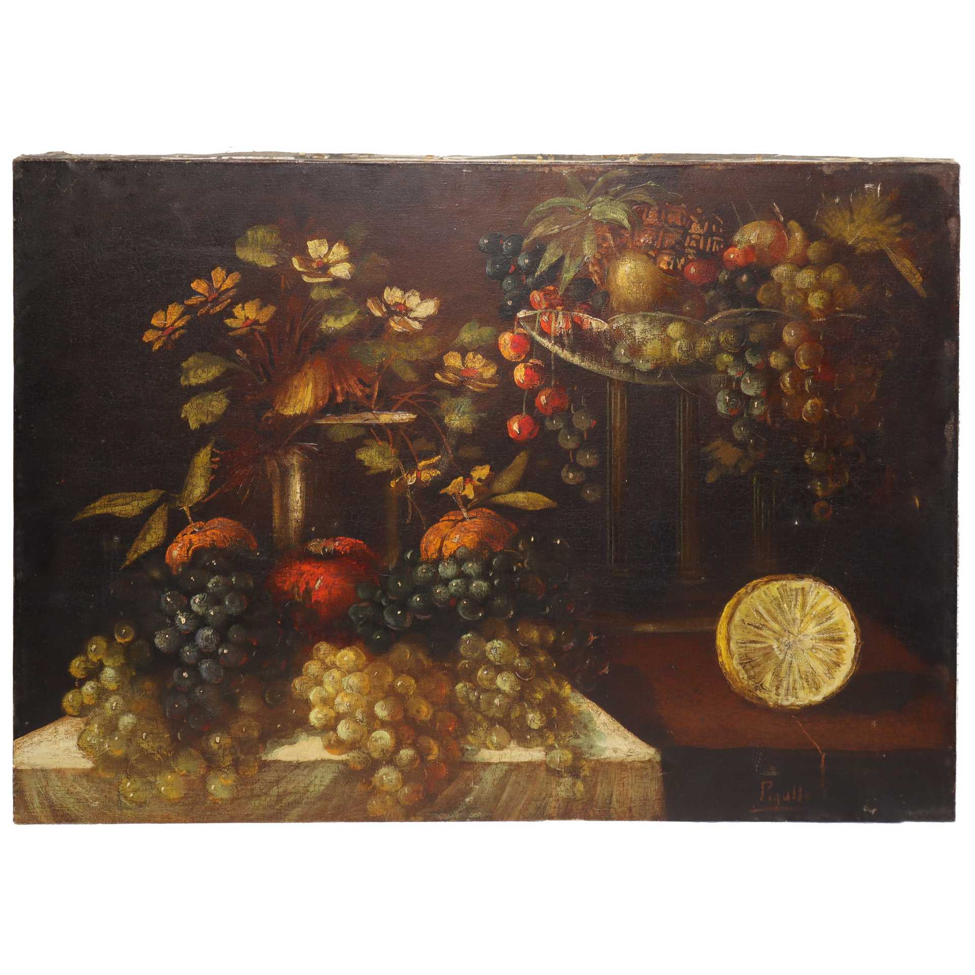 Natura morta di frutta, 20° secolo H cm 50x70 - in cornice H cm 74x94 Olio su tela Firmata al fronte in basso a destra.