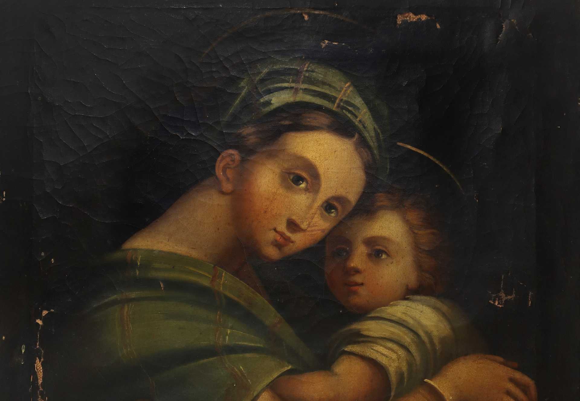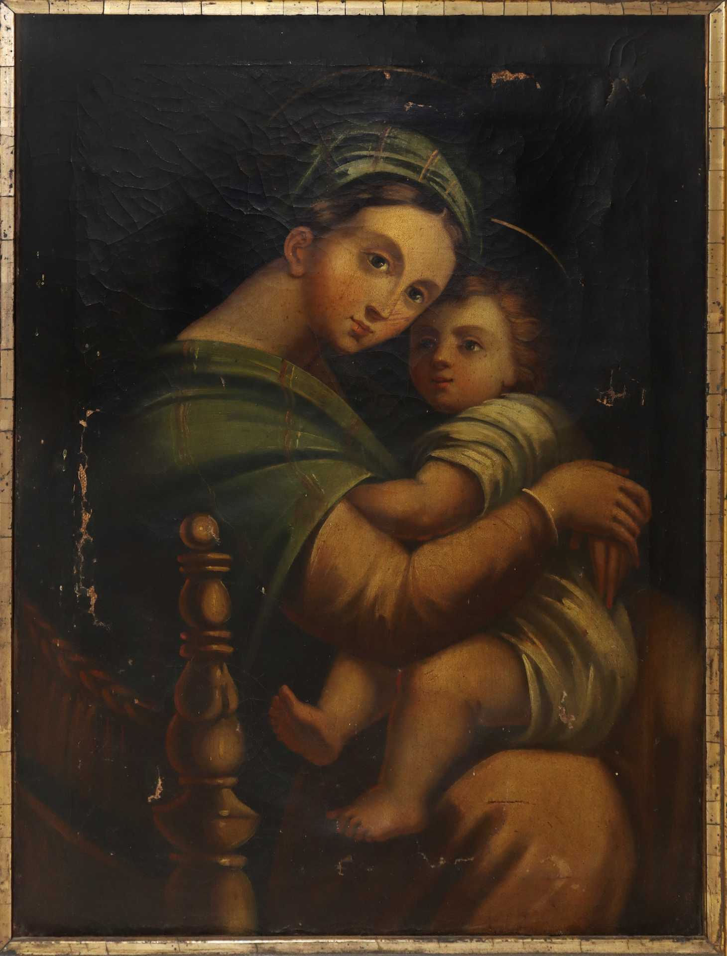 Madonna della seggiola con Bambino Gesù, da Raffaello, Italy, late 19° secolo Cm 53x40, in cornice 60x48 Dipinto ad olio su tela Cadute di colore.