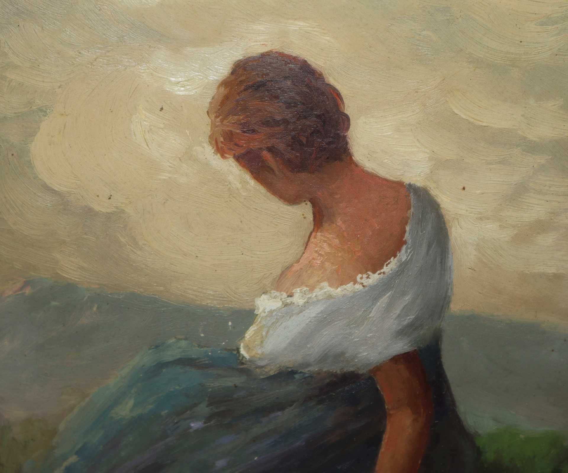 Donna seduta su prato H cm 46x36 - in cornice H cm 57x47 Olio su cartoncino Firmato Gattuso in basso a destra