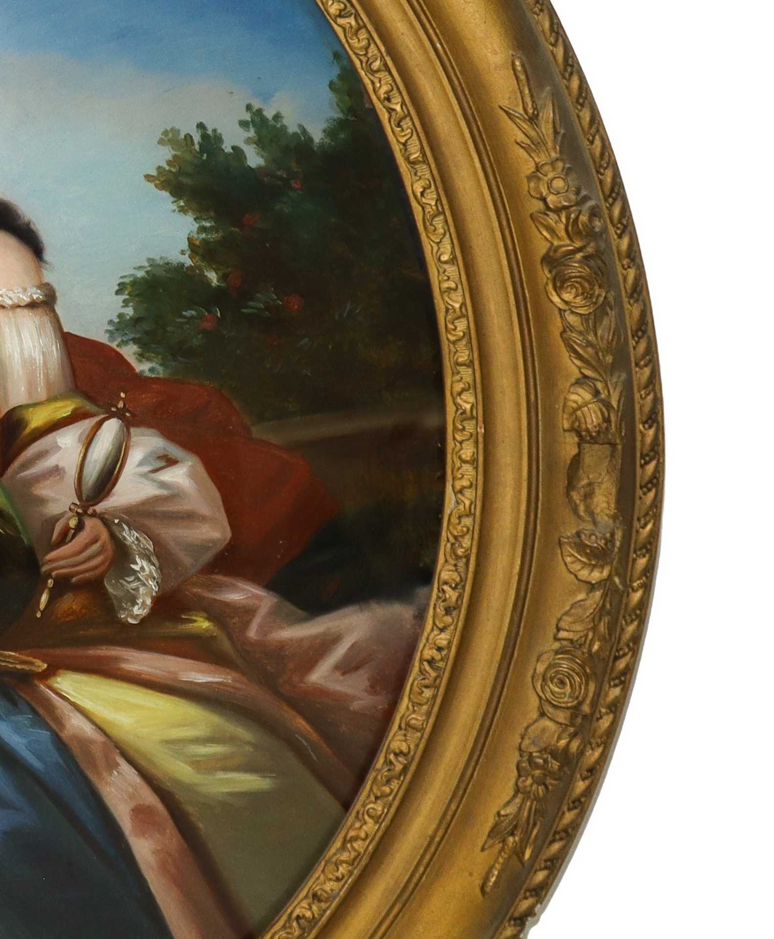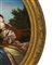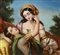 Donne in giardino, 19° secolo H cm 56x46 - in cornice H cm 69x59 Fixè sur verre Cornice ovale in legno dorato