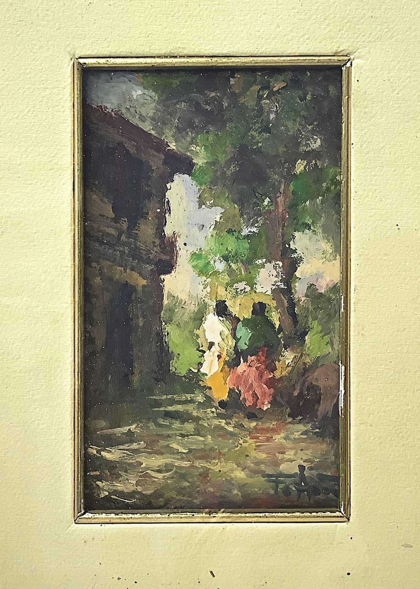 Due donne, 20° secolo 15,5x9,3 ,in cornice 31x25 Olio su tavoletta Firmato in basso a destra F.Asont