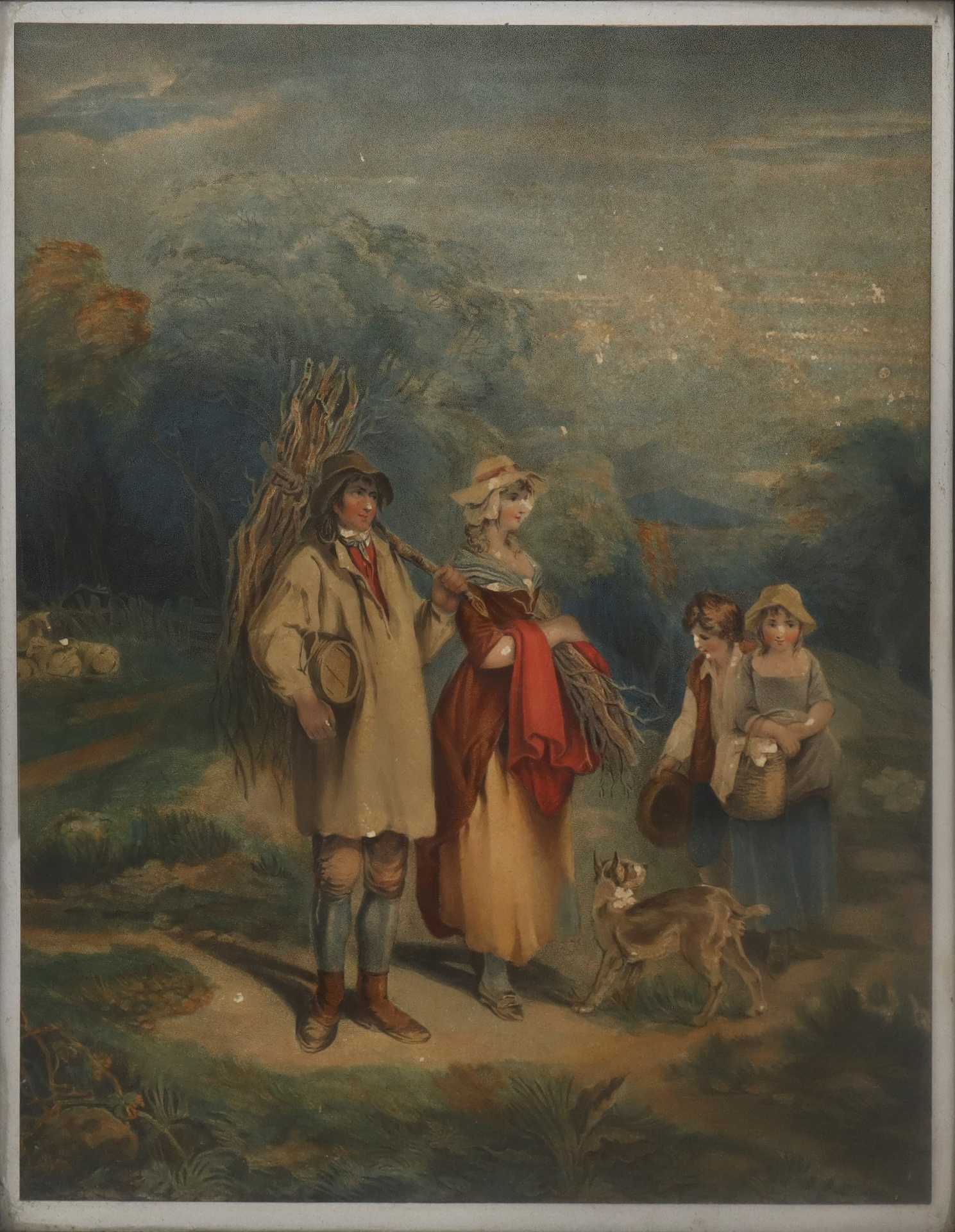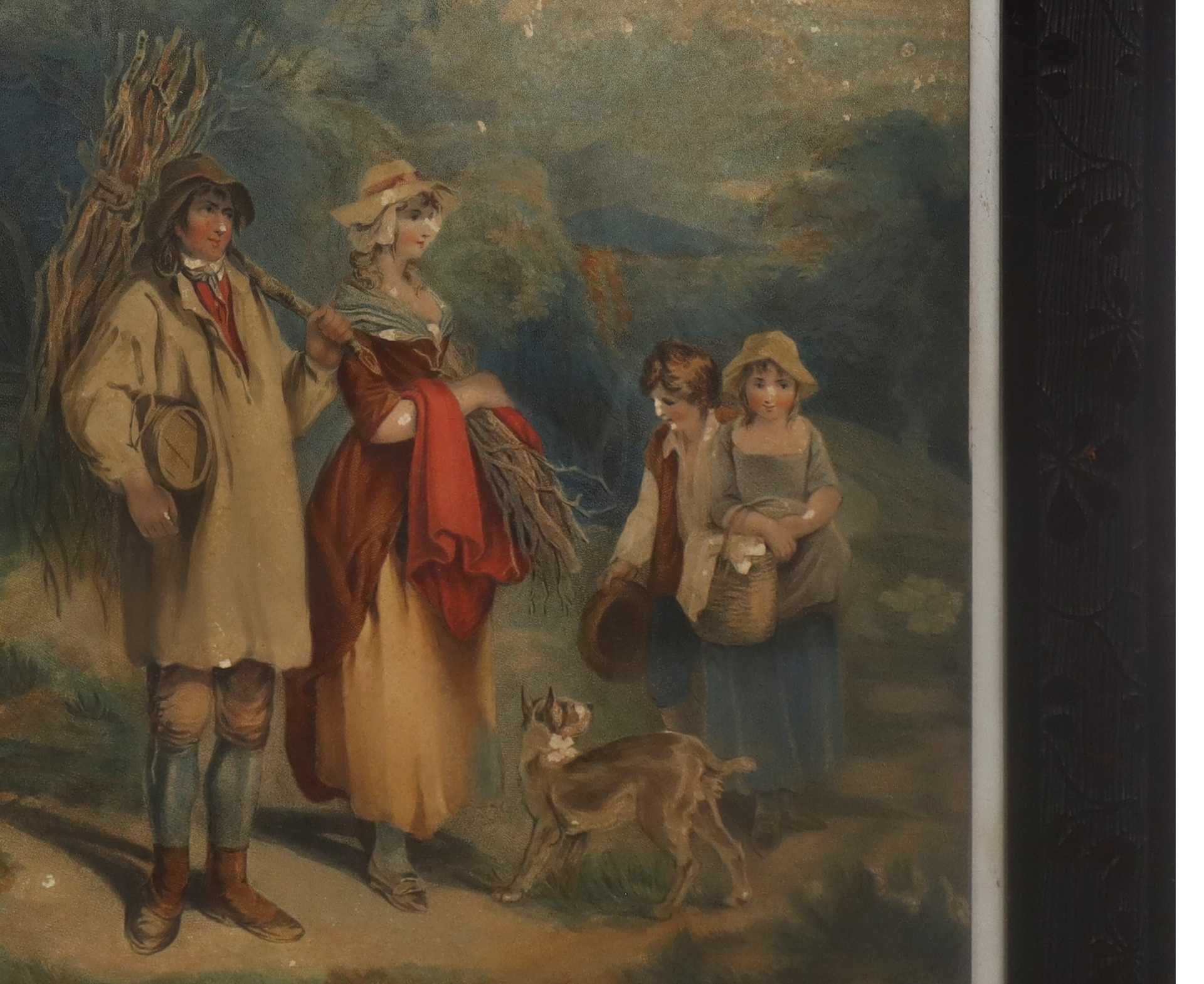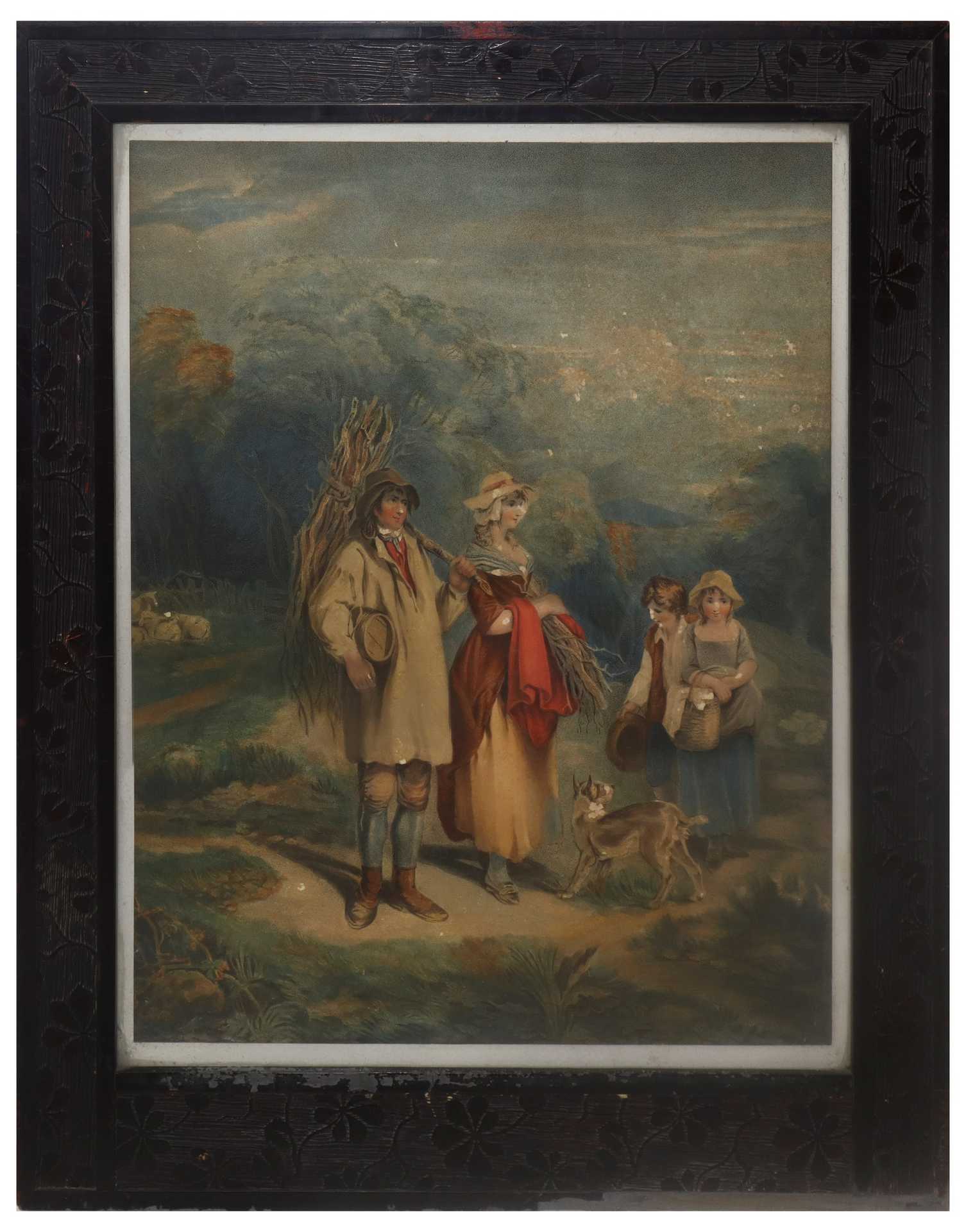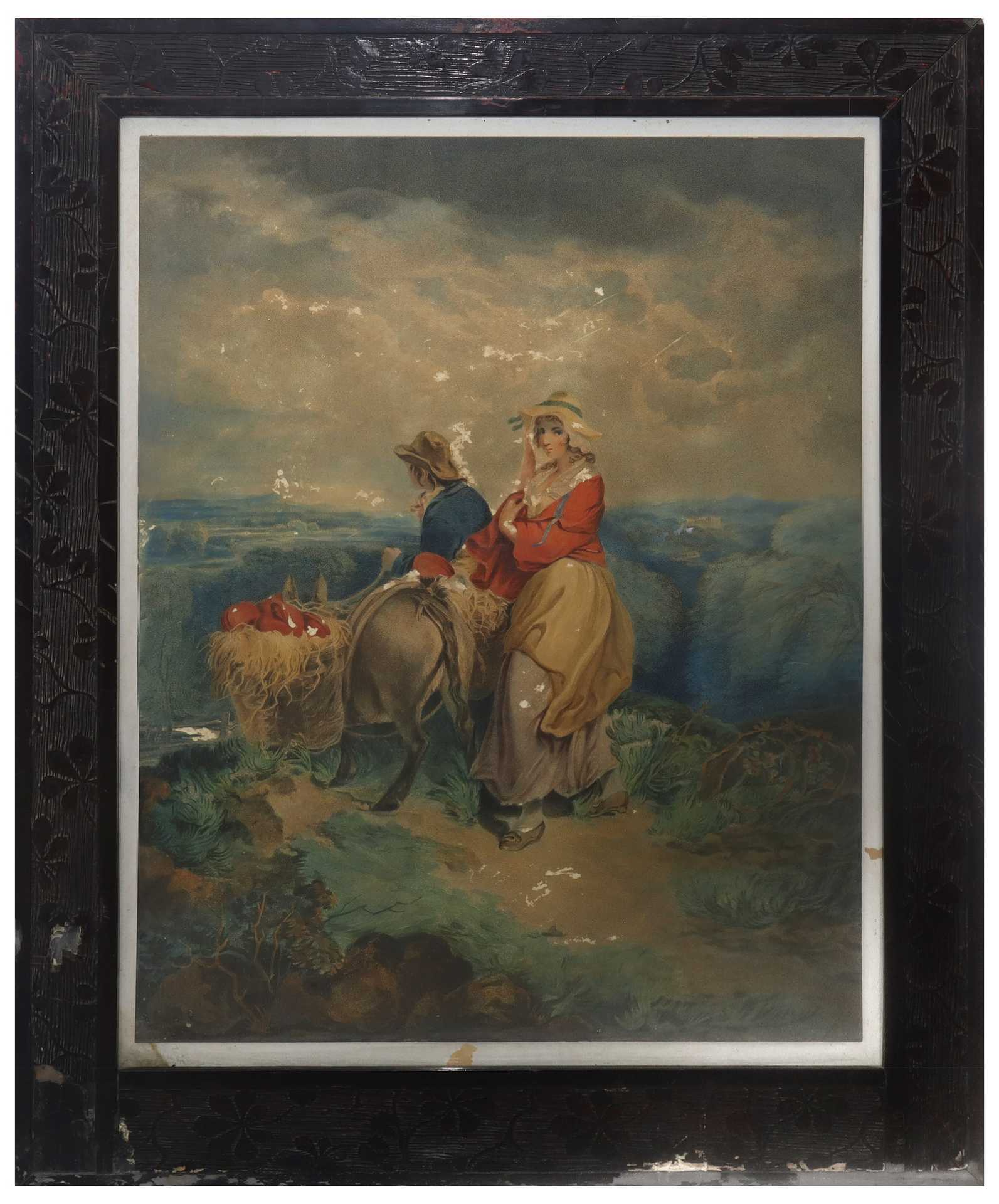 Lotto 29 | Coppia di stampe con personaggi in cornice di legno con decorazioni floreali