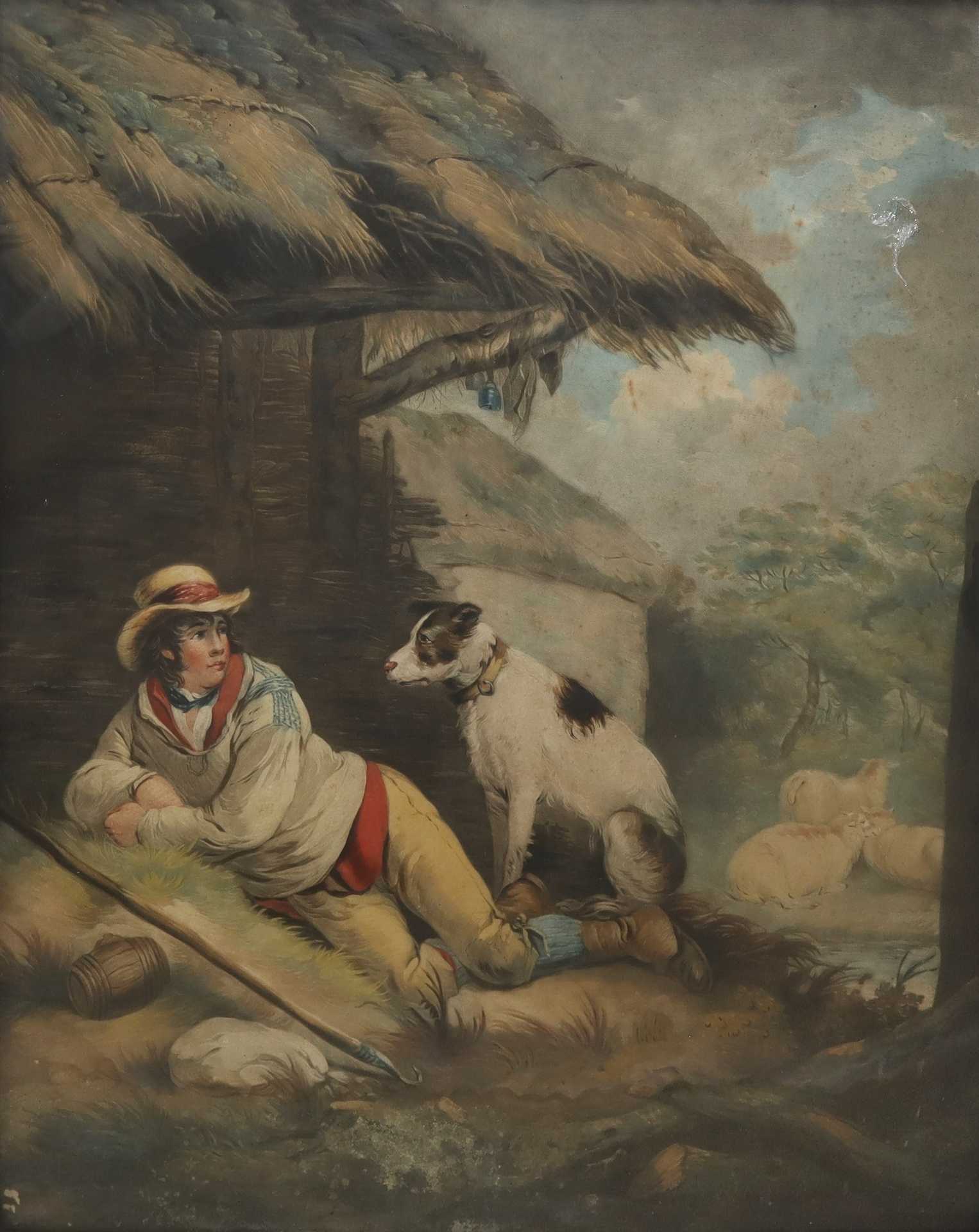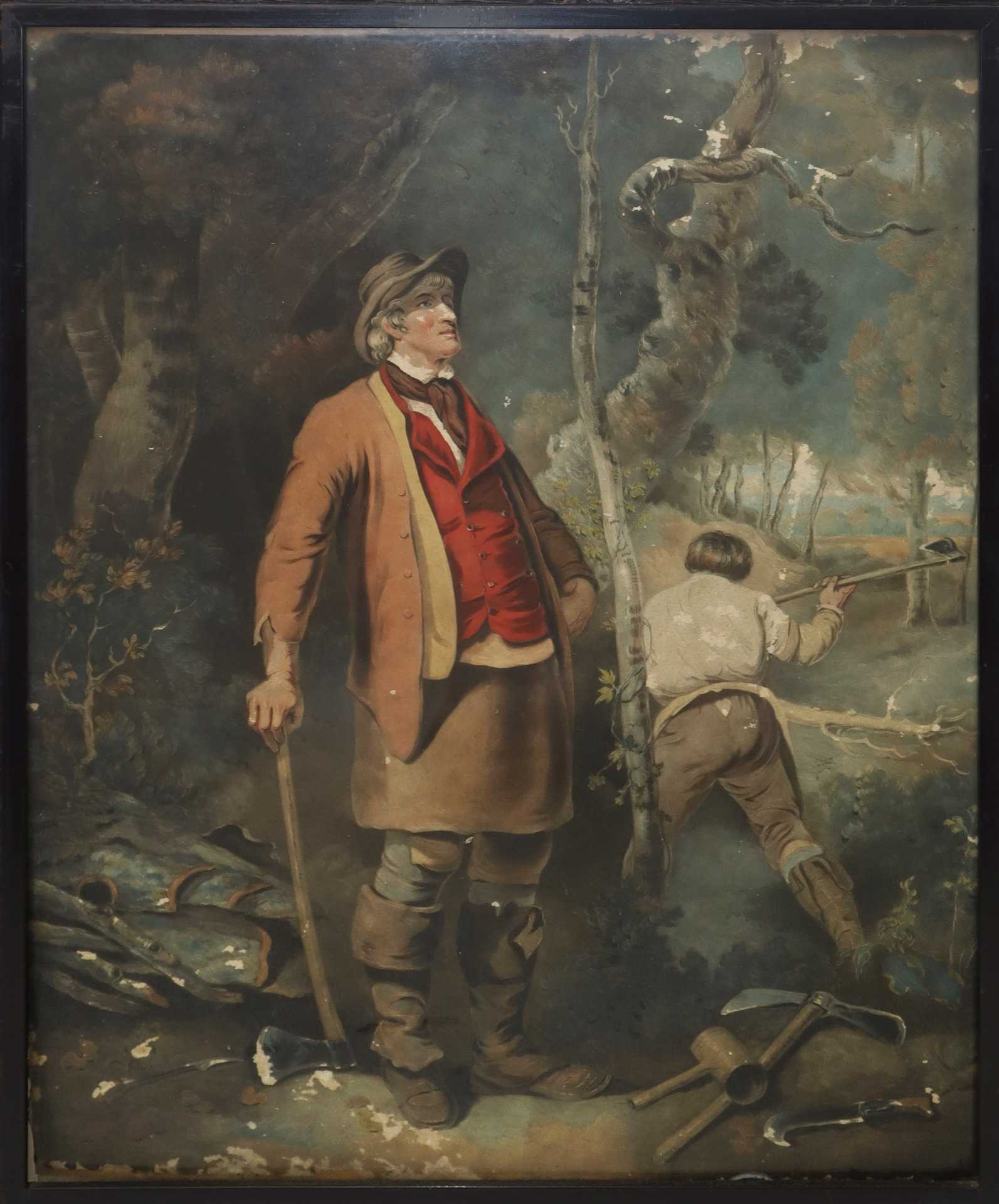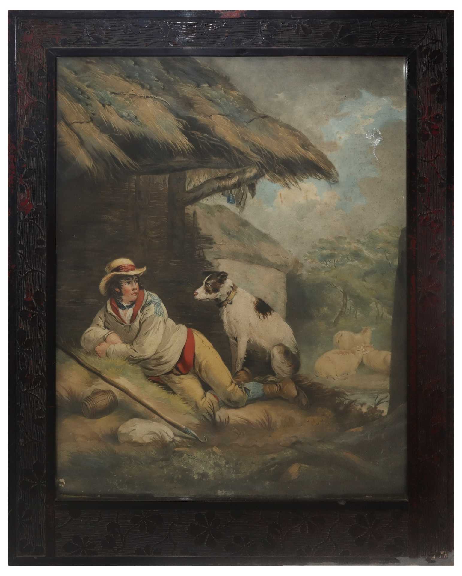 Coppia di stampe con personaggi in cornice di legno con decorazioni floreali