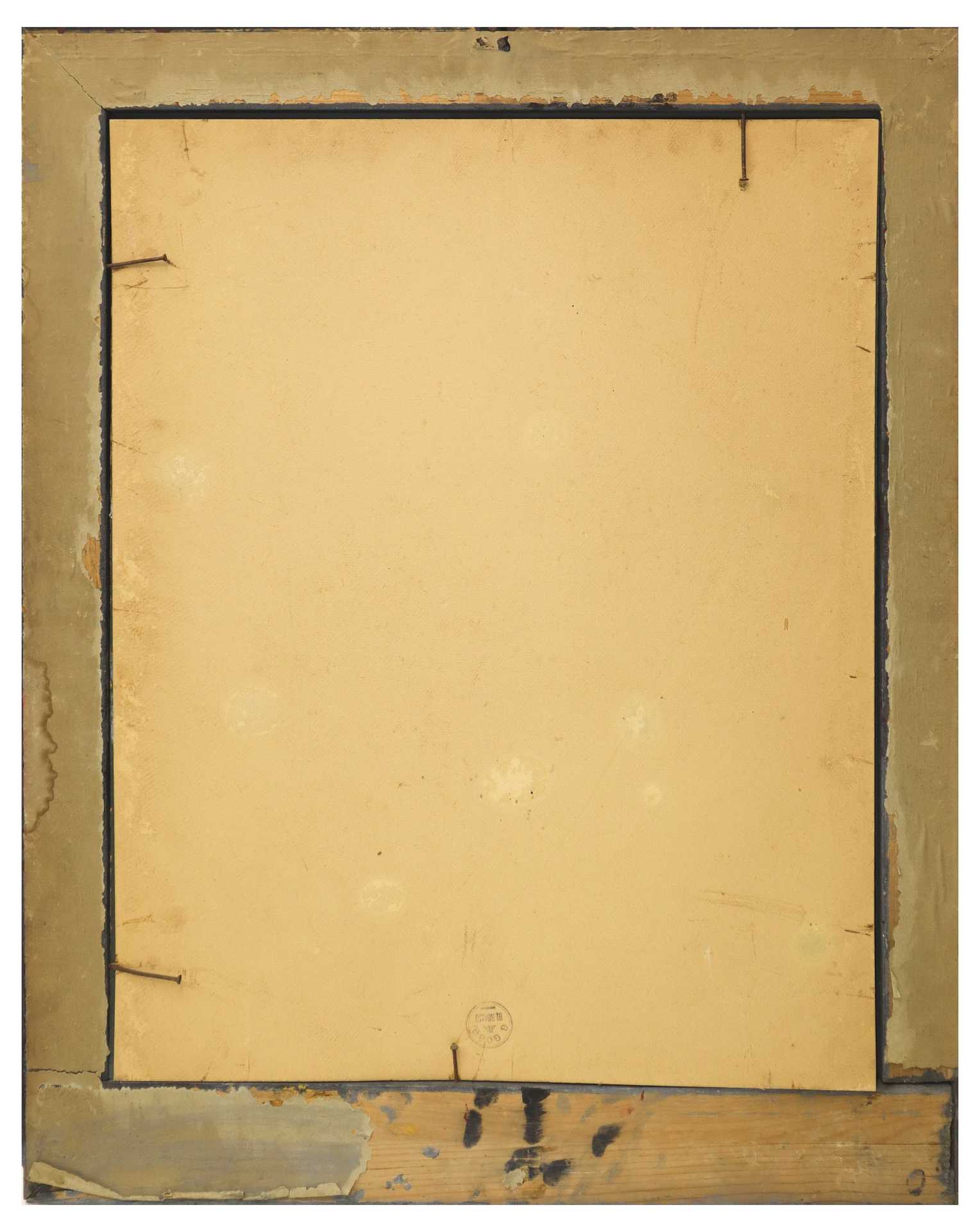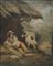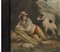 Coppia di stampe con personaggi in cornice di legno con decorazioni floreali cm 72x57