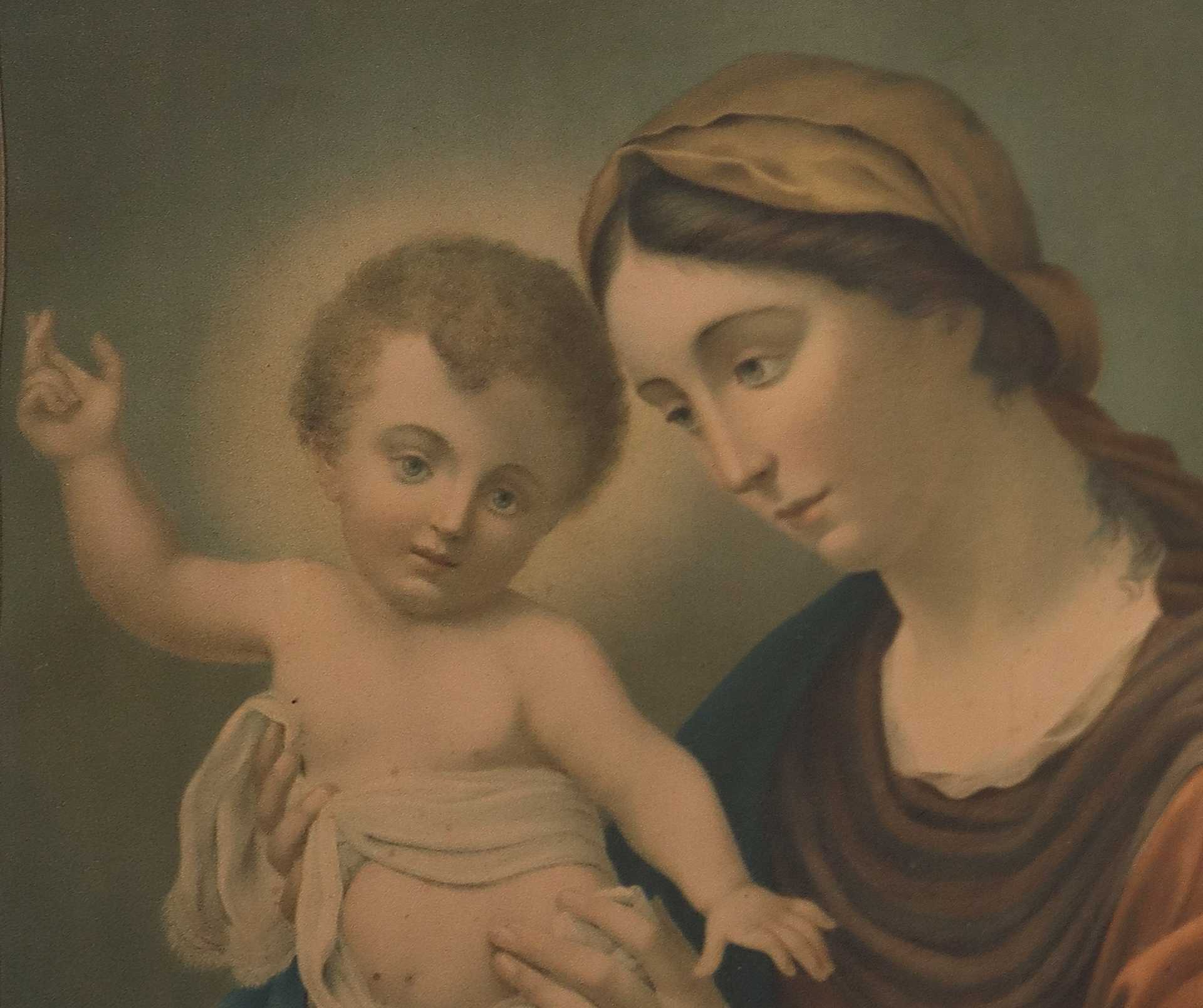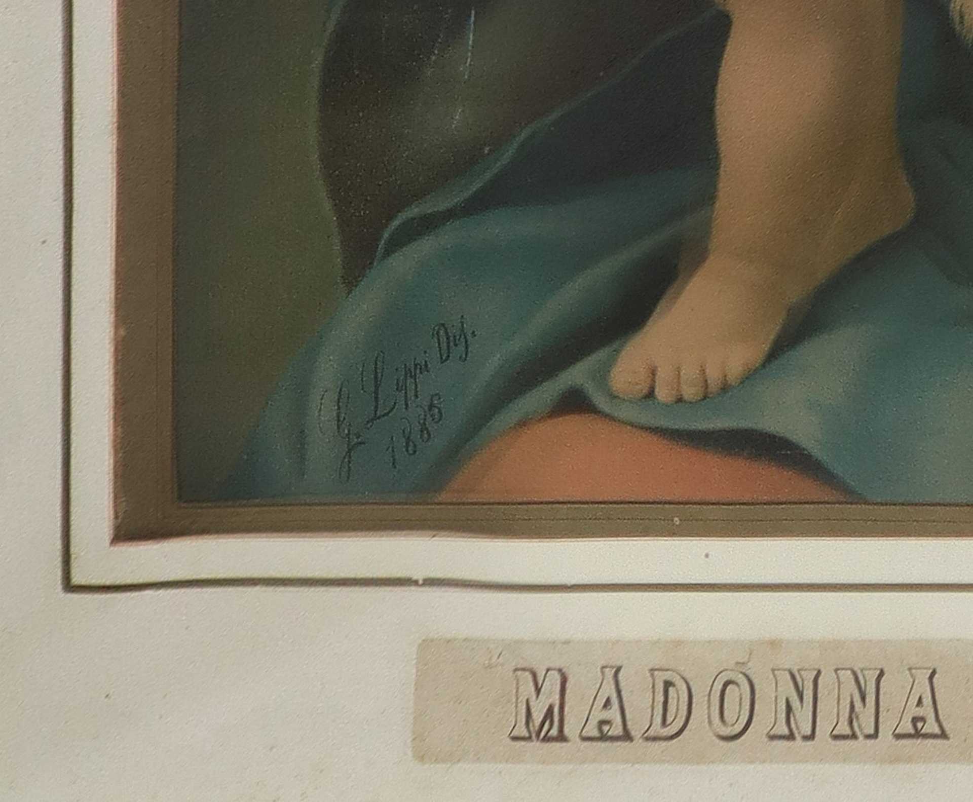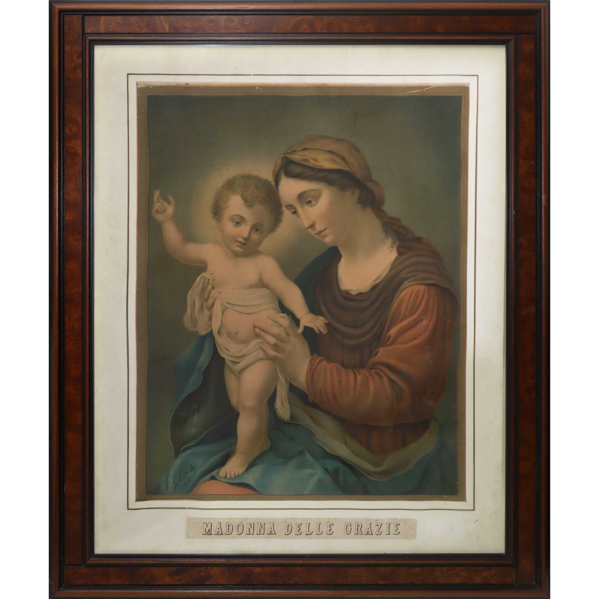 Stampa raffigurante Madonna delle grazie In cornice di radica di noce H cm 102 x 85