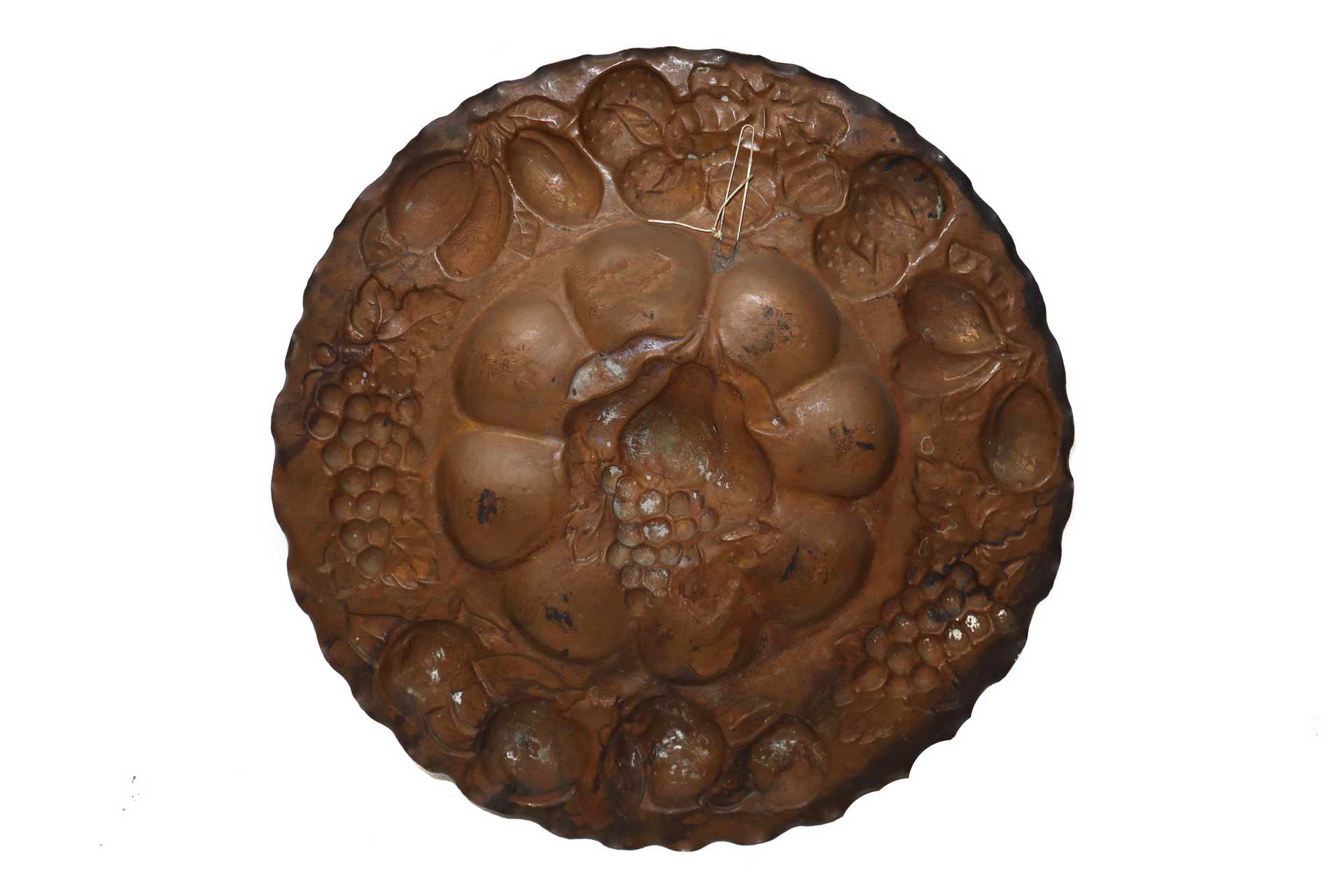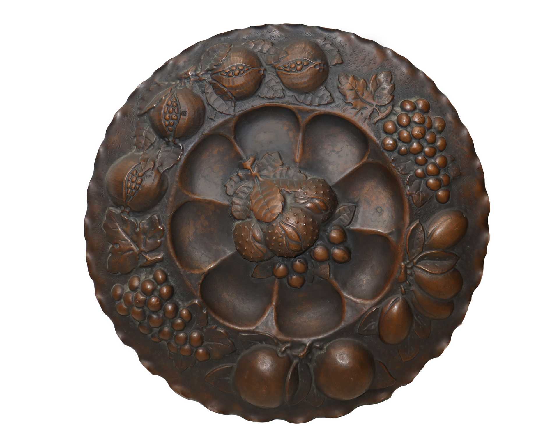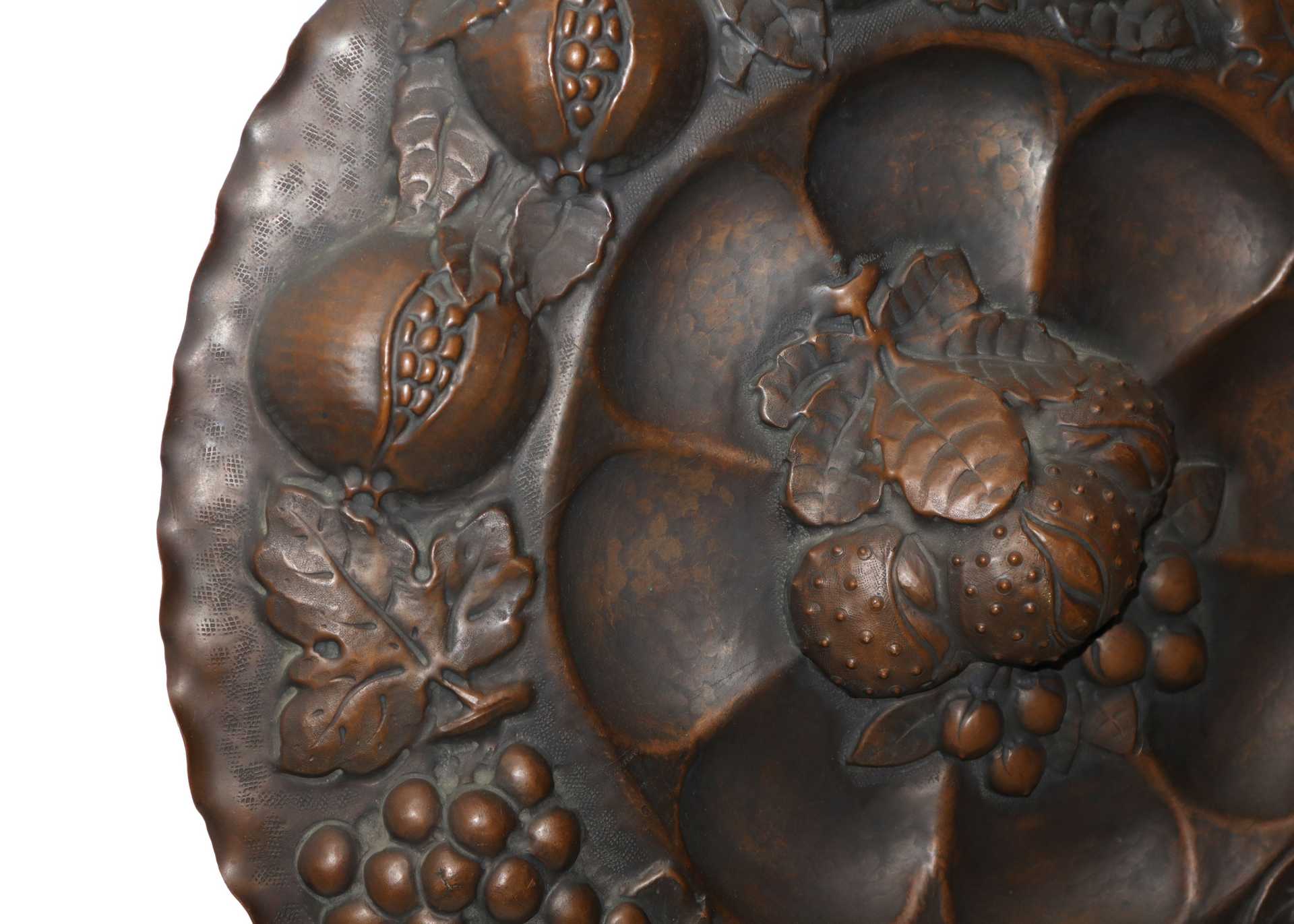 Coppia di piatti con lavorazione di frutti a sbalzo Diametro cm 47 in ottone patinato bruno