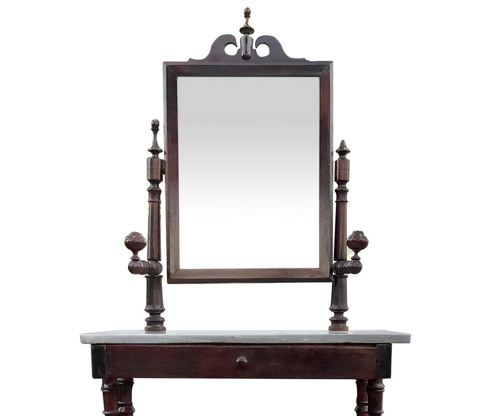 Tolettina in legno di noce , Late 19° secolo H 163, 74x49 cm con marmo al piano sagomato con specchiera e portacandelecon marmo al piano sagomato con specchiera e portacandele