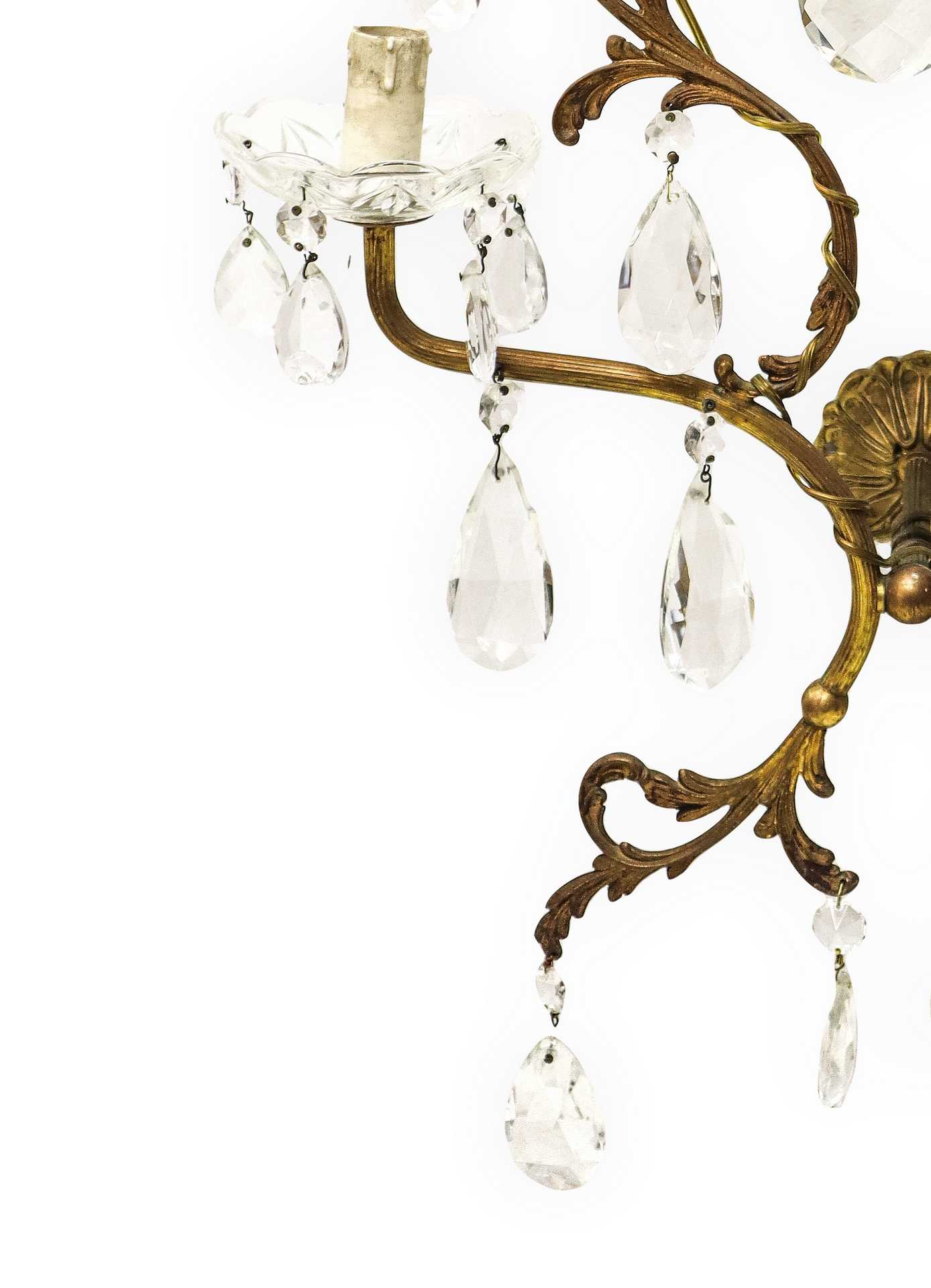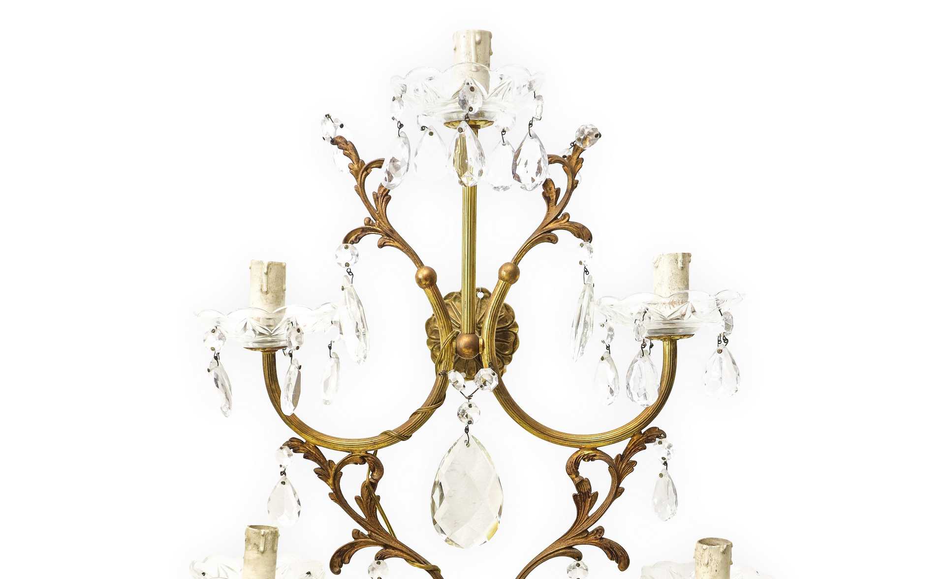 Coppia di appliques a 5 luci, 20° secolo cm 75x45 In ottone dorato con brindoli.In ottone dorato con brindoli.
