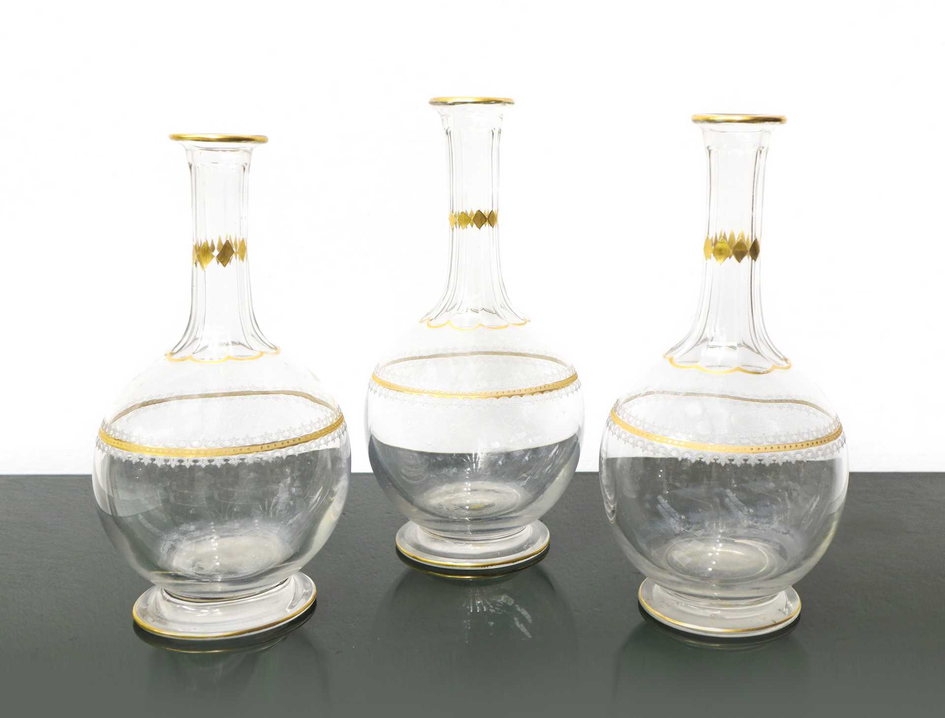 N.3 versatoi in vetro, Early 20° secolo h cm 26; h cm 25,5; h cm 24 Con decori doratiCon decori dorati