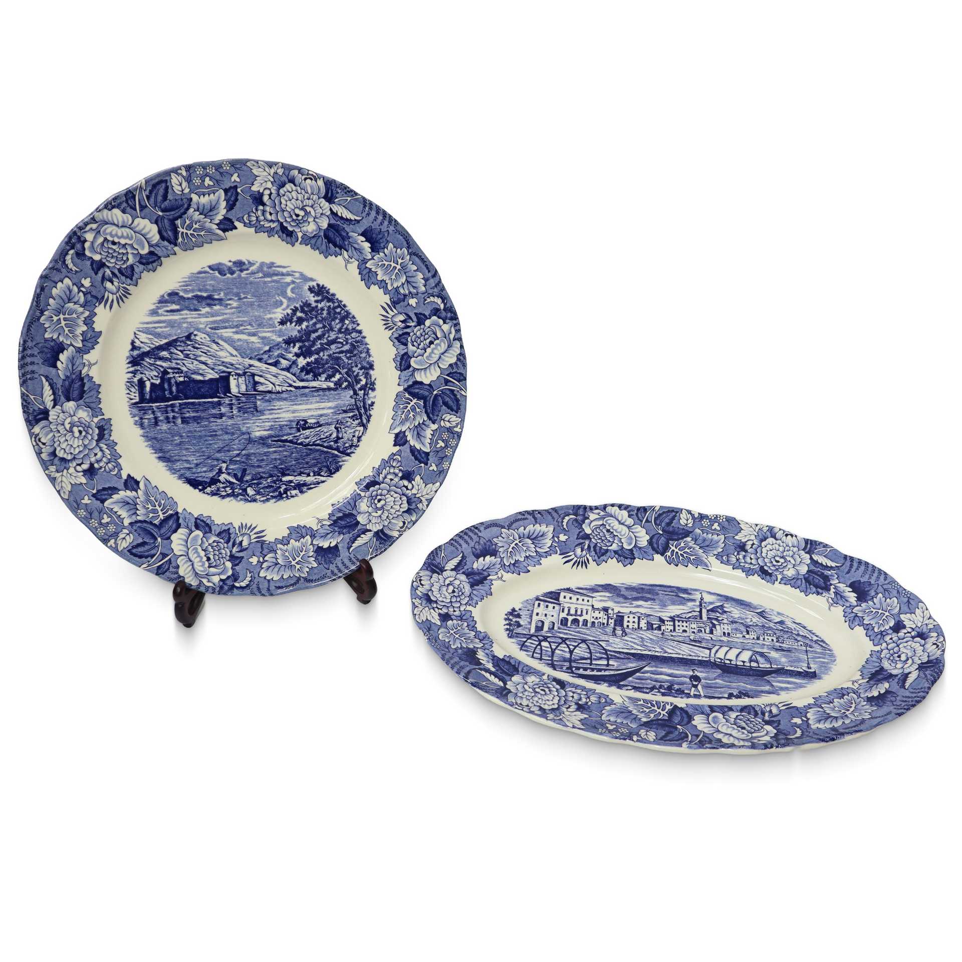 Richard Ginori - N.2 piatti Diamondo Stone Lavel con paesaggio di citta' fluviale e paesaggio montano ovale cm 37x25 - rotondo cm 32 Marchio alla baseMarchio alla base