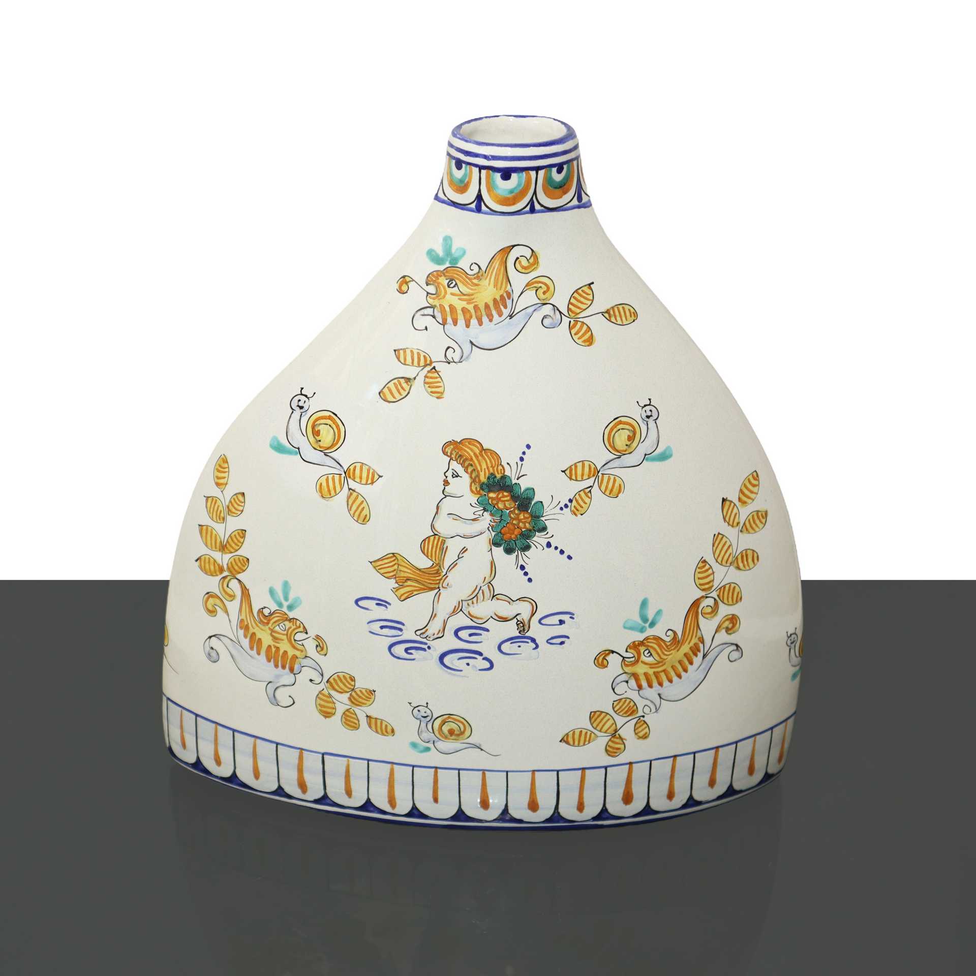 Vaso policromo De Ruta con raffigurazione di puttini su base bianca, 20° secolo