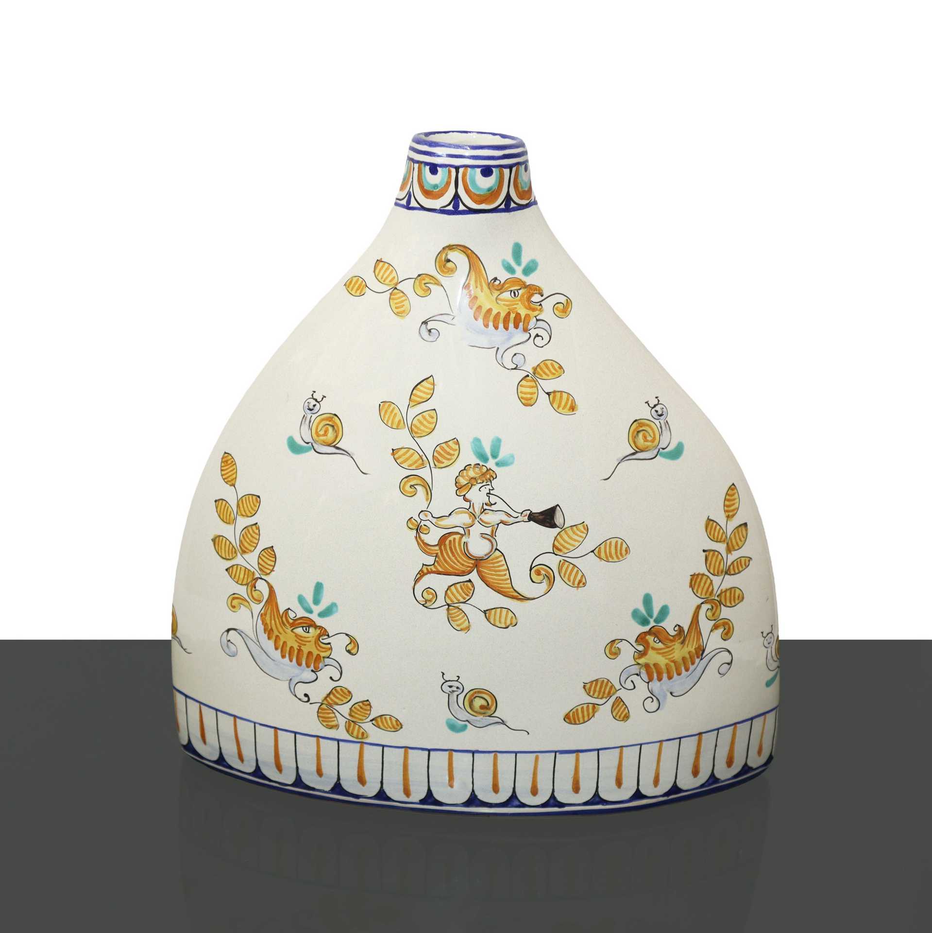 Vaso policromo De Ruta con raffigurazione di puttini su base bianca, 20° secolo H cm 29 x 30