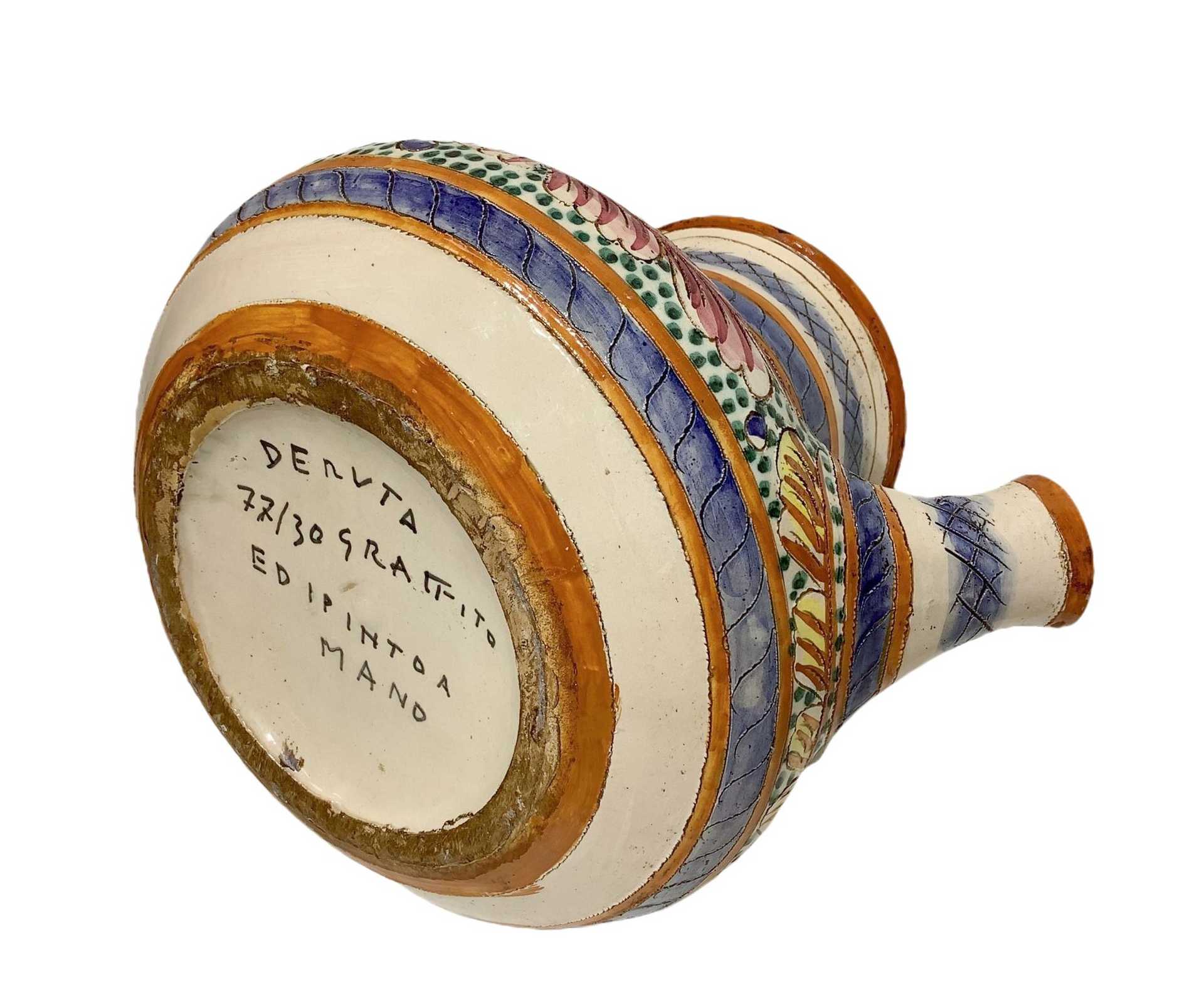 Versatoio Deruta h20x60 cm A guisa di orcio in maiolica, con decoro floreale graffito.A guisa di orcio in maiolica, con decoro floreale graffito.