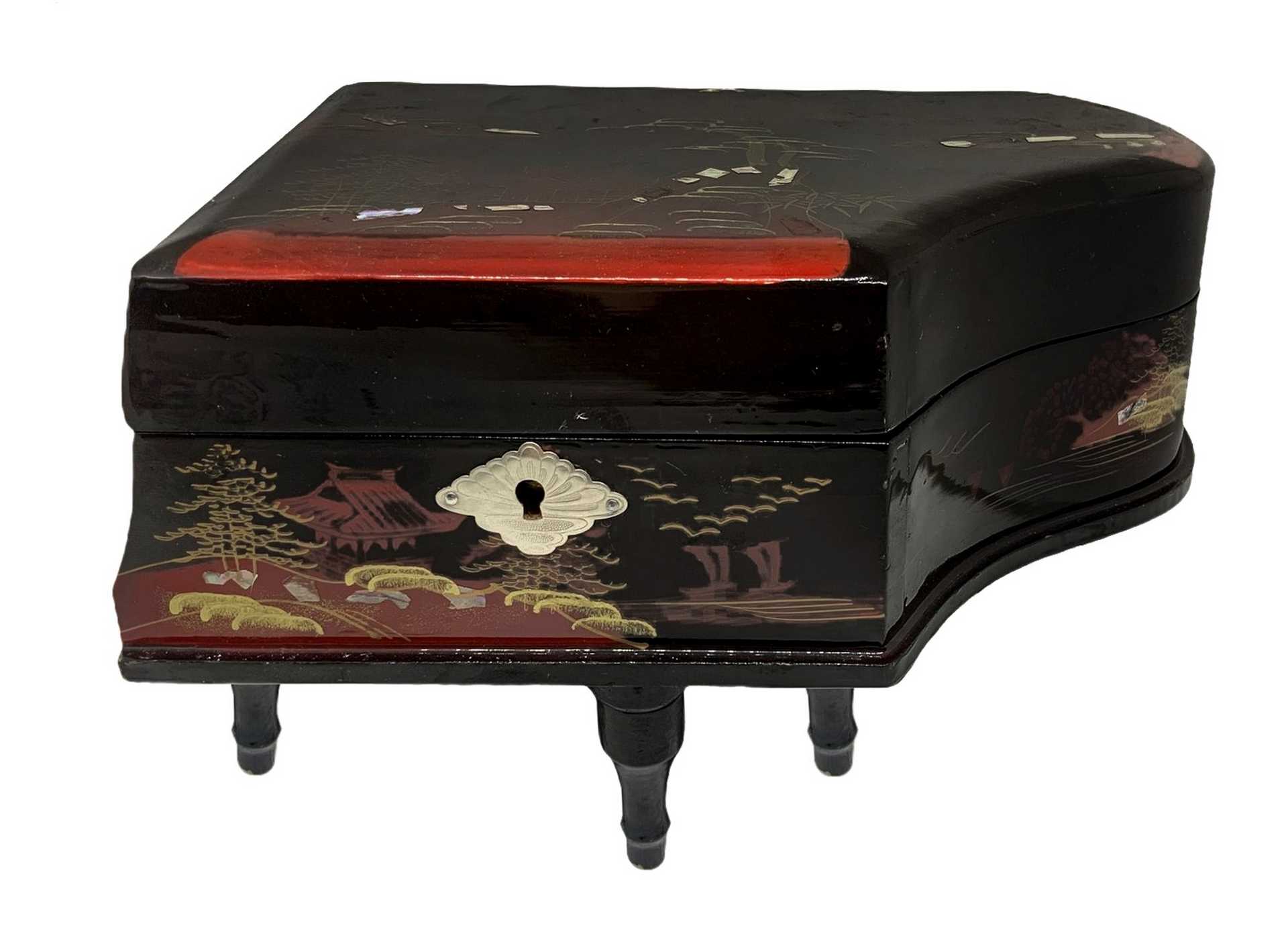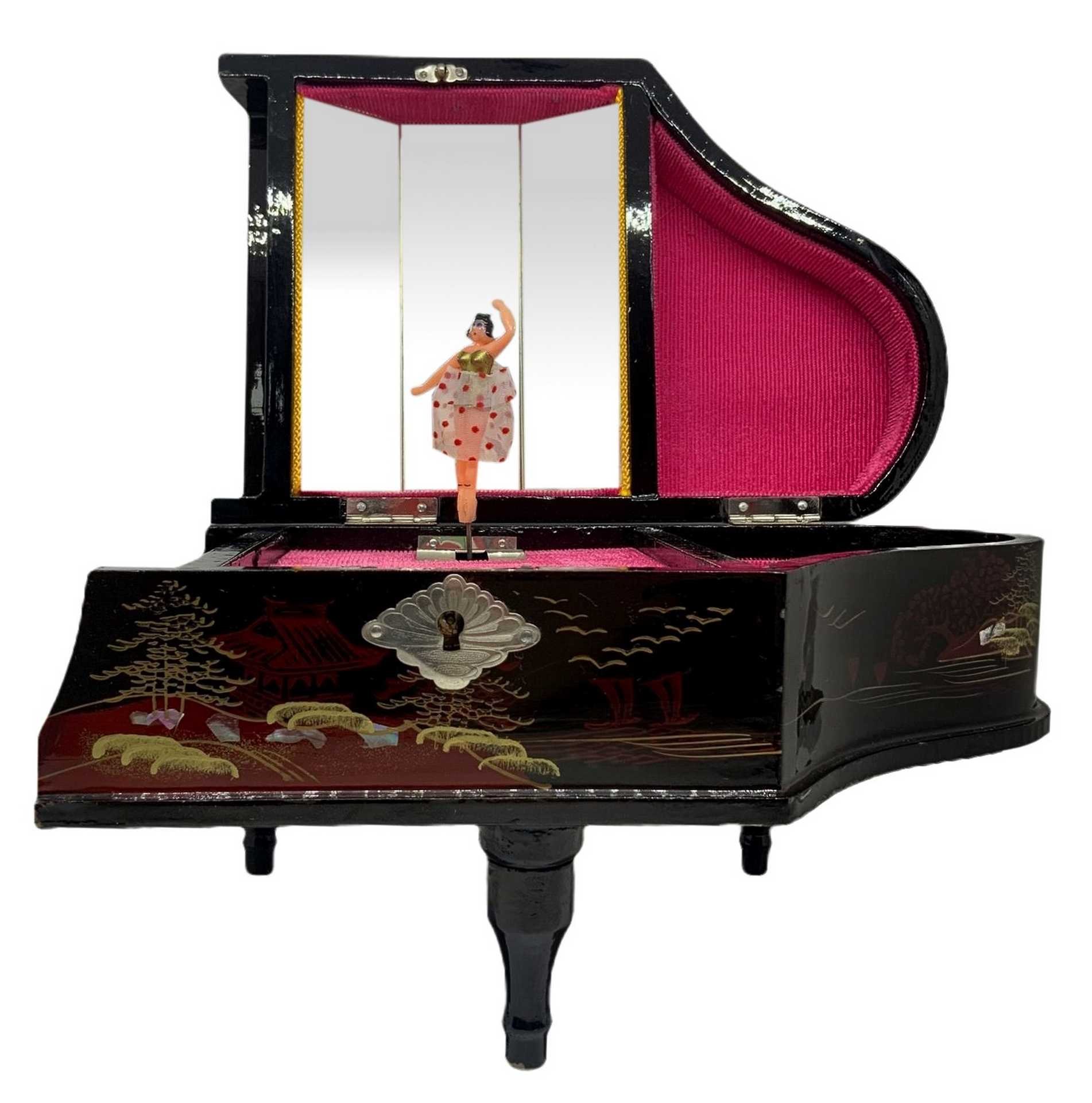Pianoforte con Carillon vintage H cm 15. Base cm 23x15 con ballerina, colore nero, laccato. con ballerina, colore nero, laccato.