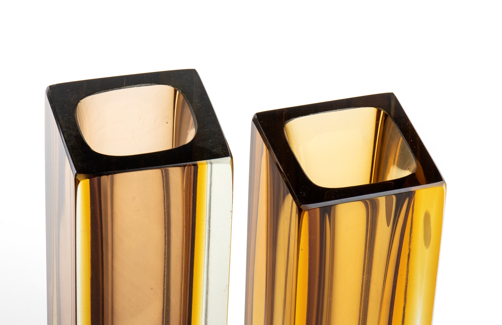 Coppia di vasi in vetro di Murano realizzati con la tecnica del sommerso Flavio Poli