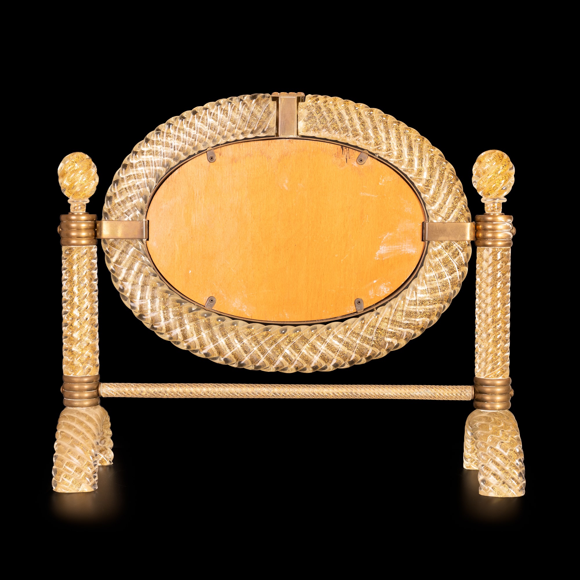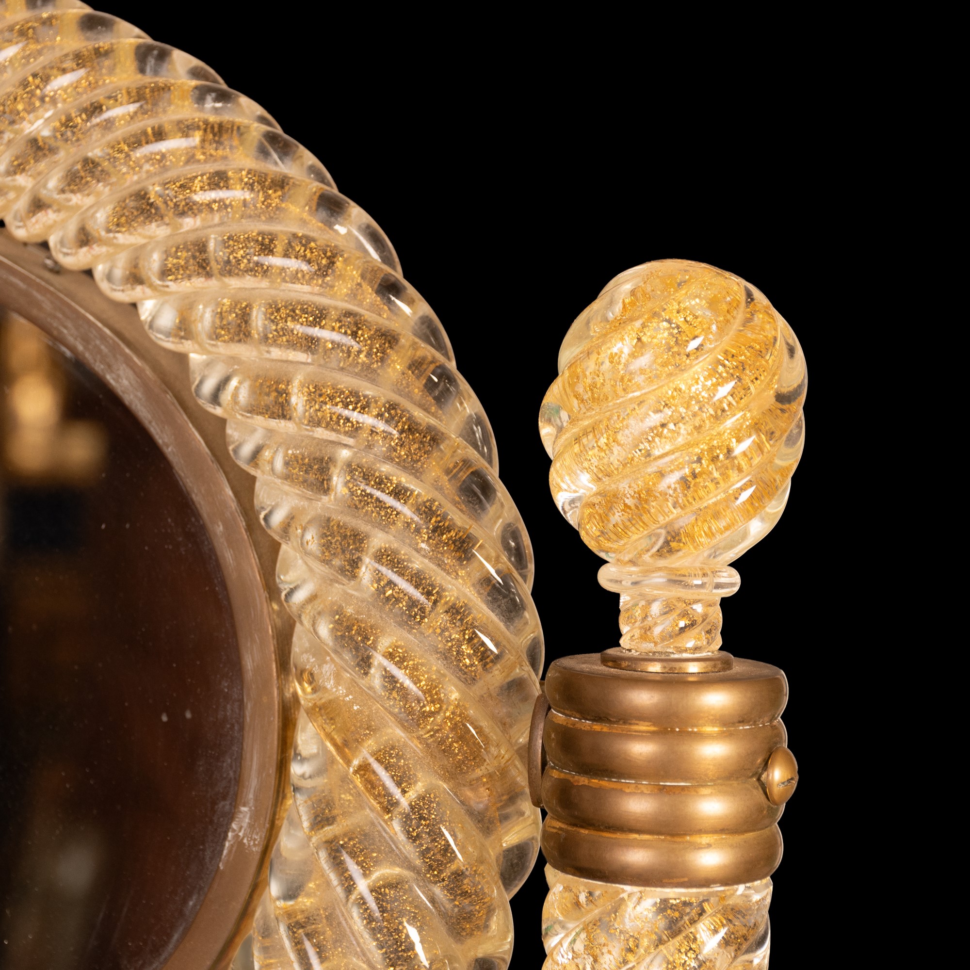 Specchio da Toletta in vetro di Murano con particolare lavorazione a corda ritorta Archimede Seguso