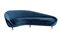Divano curvo con imbottitura rivestita in velluto ottanio, gambe in legno Federico Munari