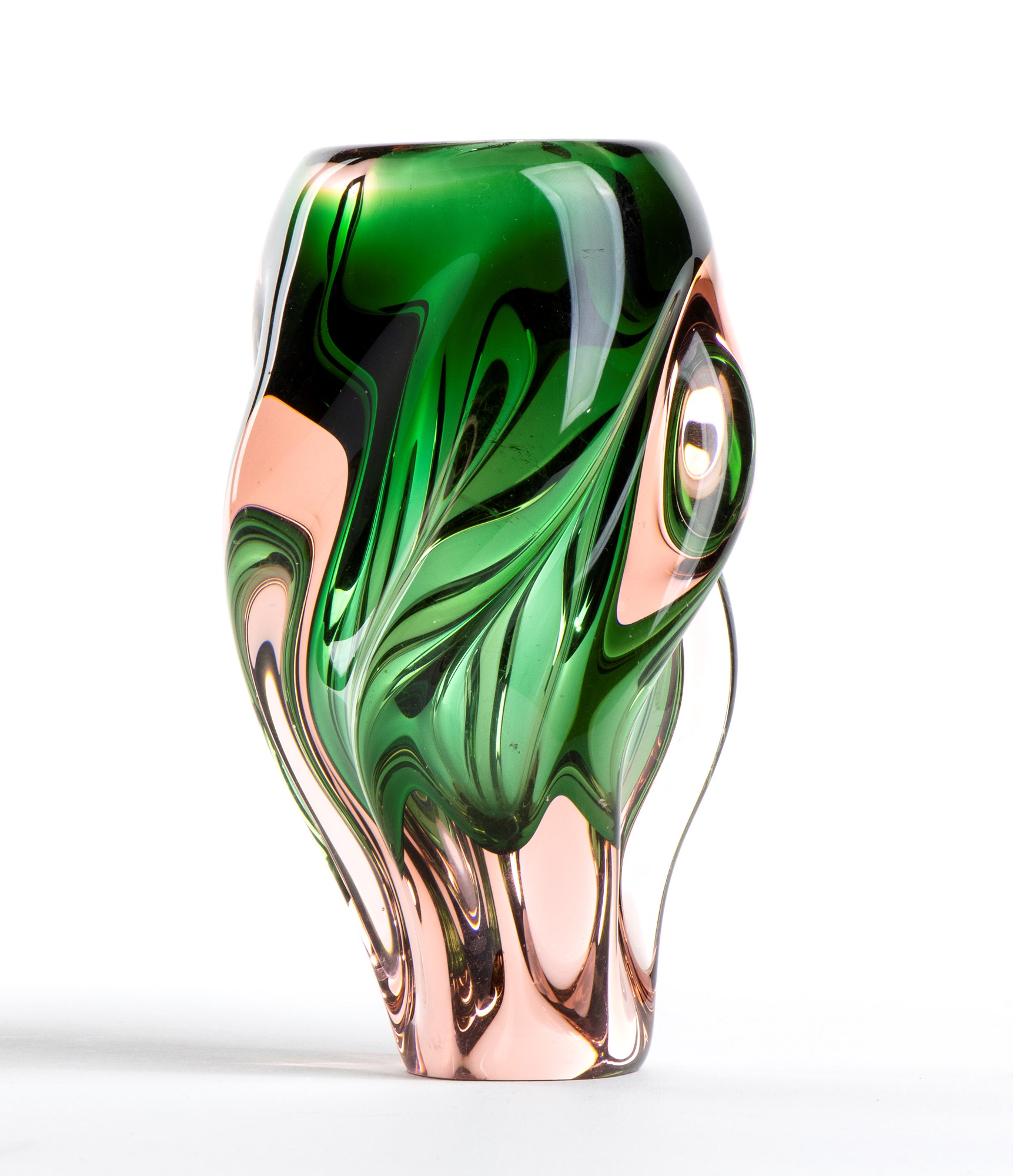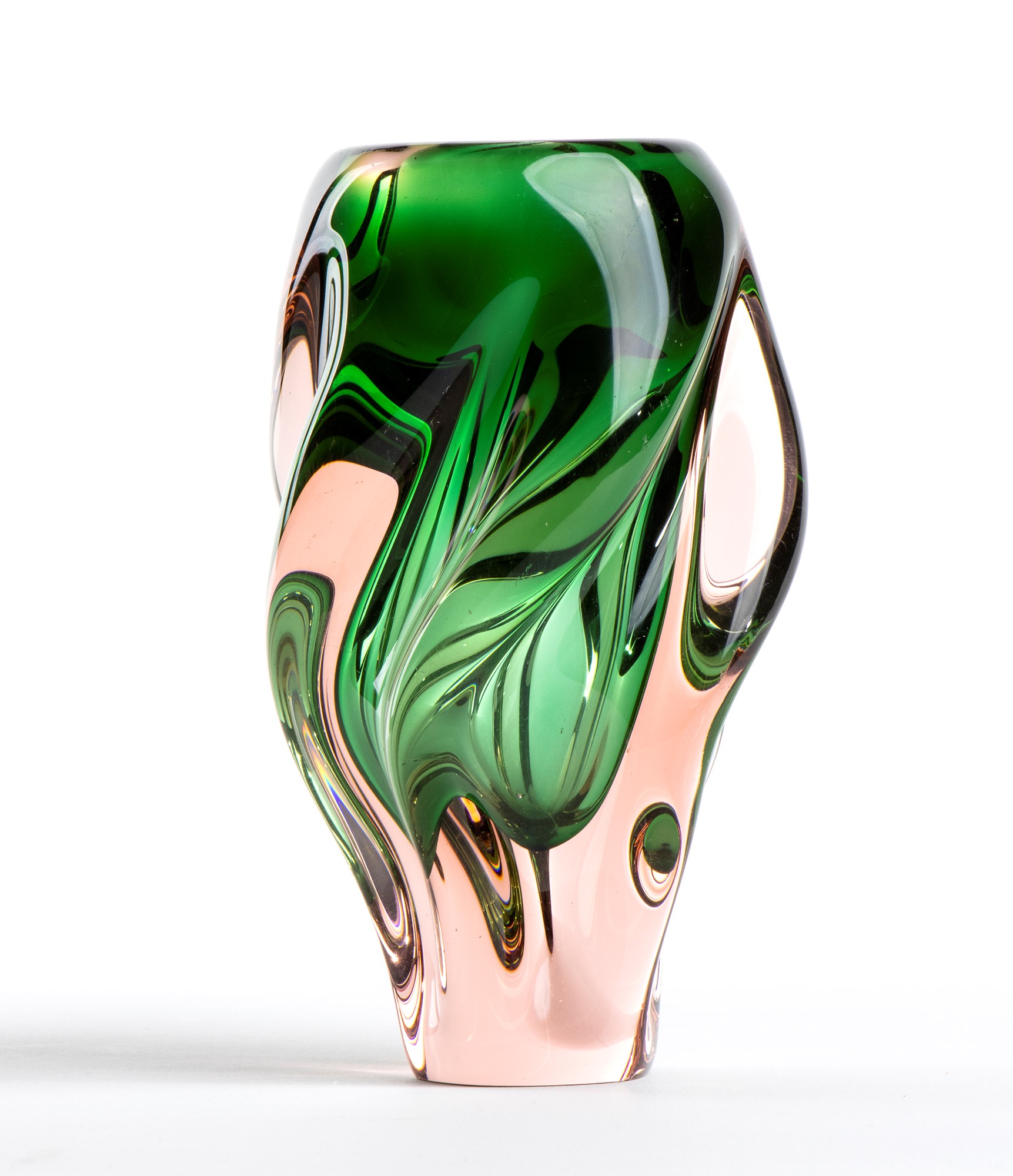 Vaso twisted in vetro di Murano realizzato con la tecnica del sommerso Josef Hospodka (attribuito a)