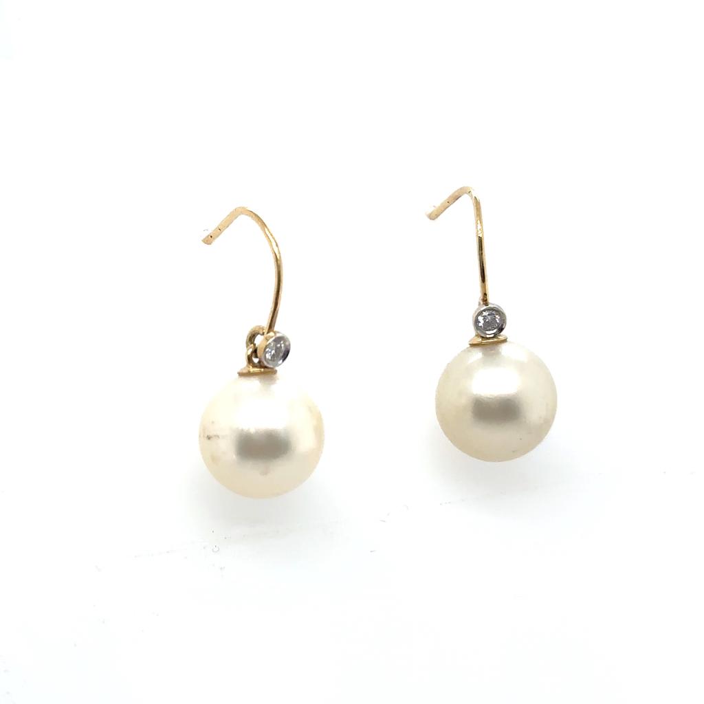 ORECCHINI IN ORO GIALLO 14K 6.22 GR CON PERLE DEI MARI DEL SUD & CON DIAMANTI PER 0.12 CARATI COLORE H PUREZZA VS - CERTIFICATO GEMMOLOGICO MAROZ DIAMONDS LTD MEMBRO ISRAEL DIAMOND EXCHANGE - AI30504