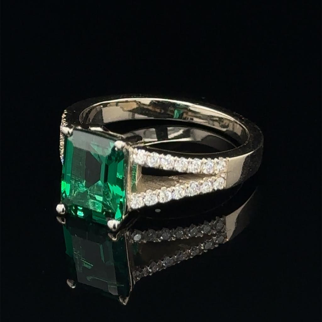 ANELLO IN ORO BIANCO 14K 4.6 GR CON SMERALDO LAB GROWN 2.00 CARATI COLORE E BRILLANTI PER 0.28 CARATI TOTALI COLORE D-F PUREZZA VS-SI