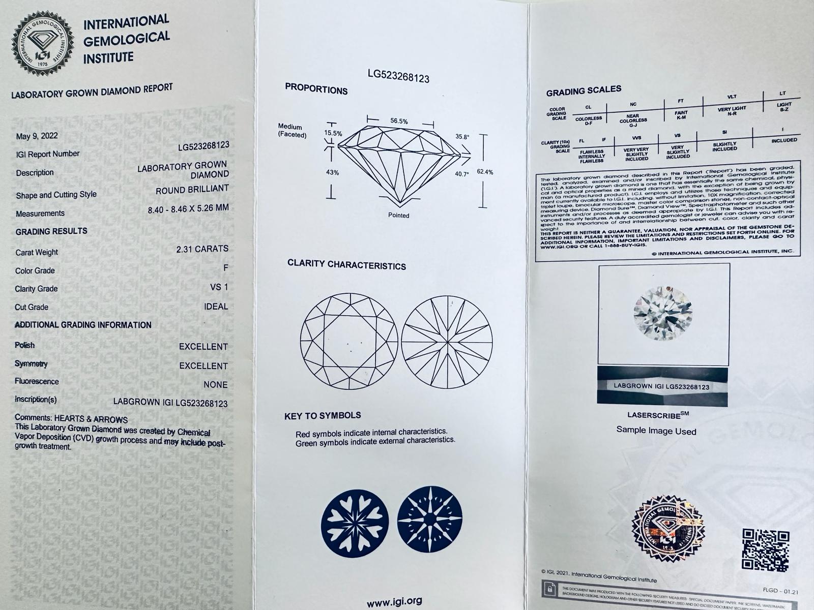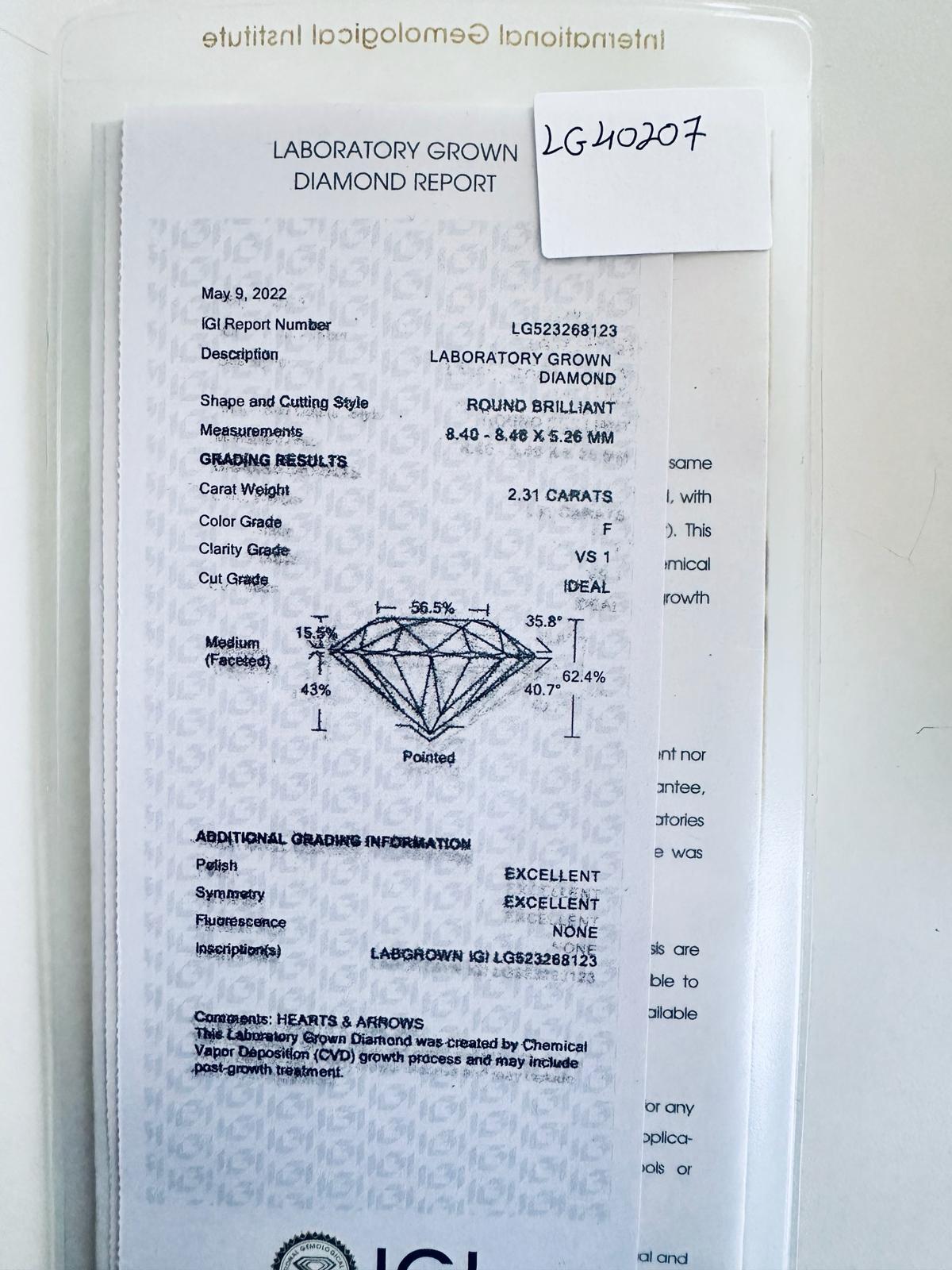 DIAMANTE 2,31 CARATI COLORE F - PUREZZA VS1 - TAGLIO BRILLANTE - LAB GROWN - CERTIFICATO IGI - LG40207