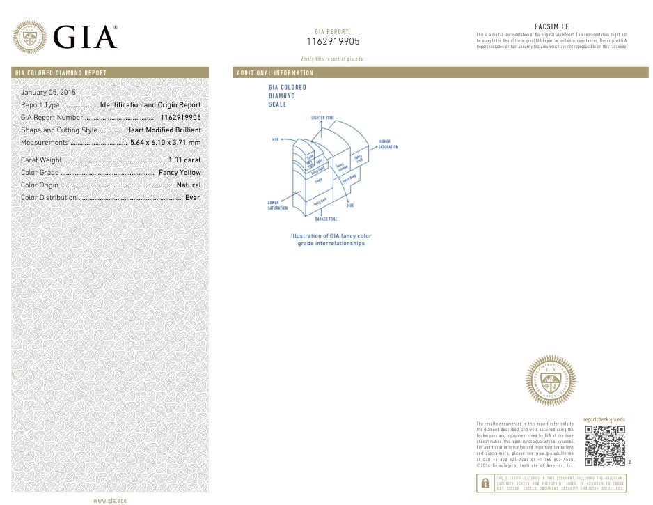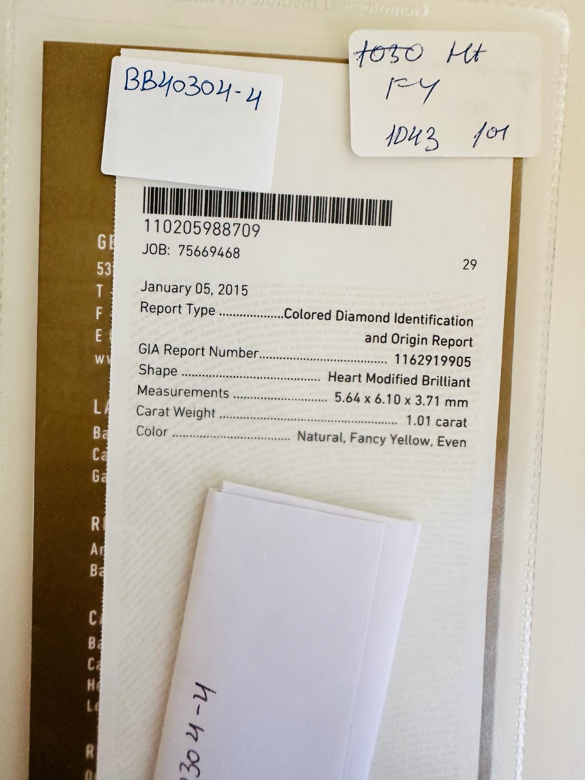 DIAMANTE FANCY COLOR 1,01 CARATI COLORE GIALLO TAGLIO CUORE - CERTIFICATO GIA - BB40304-4