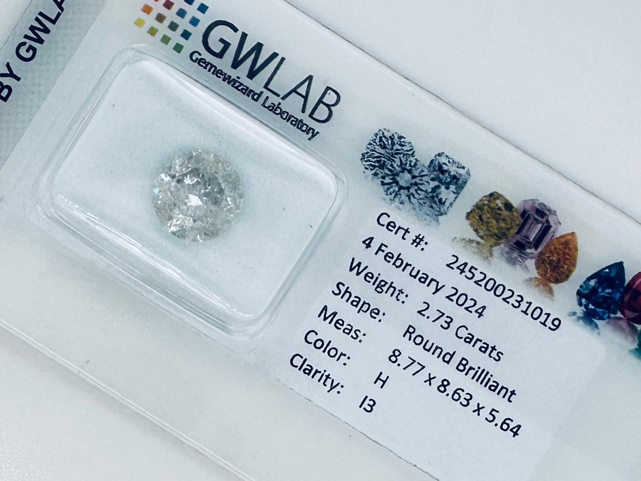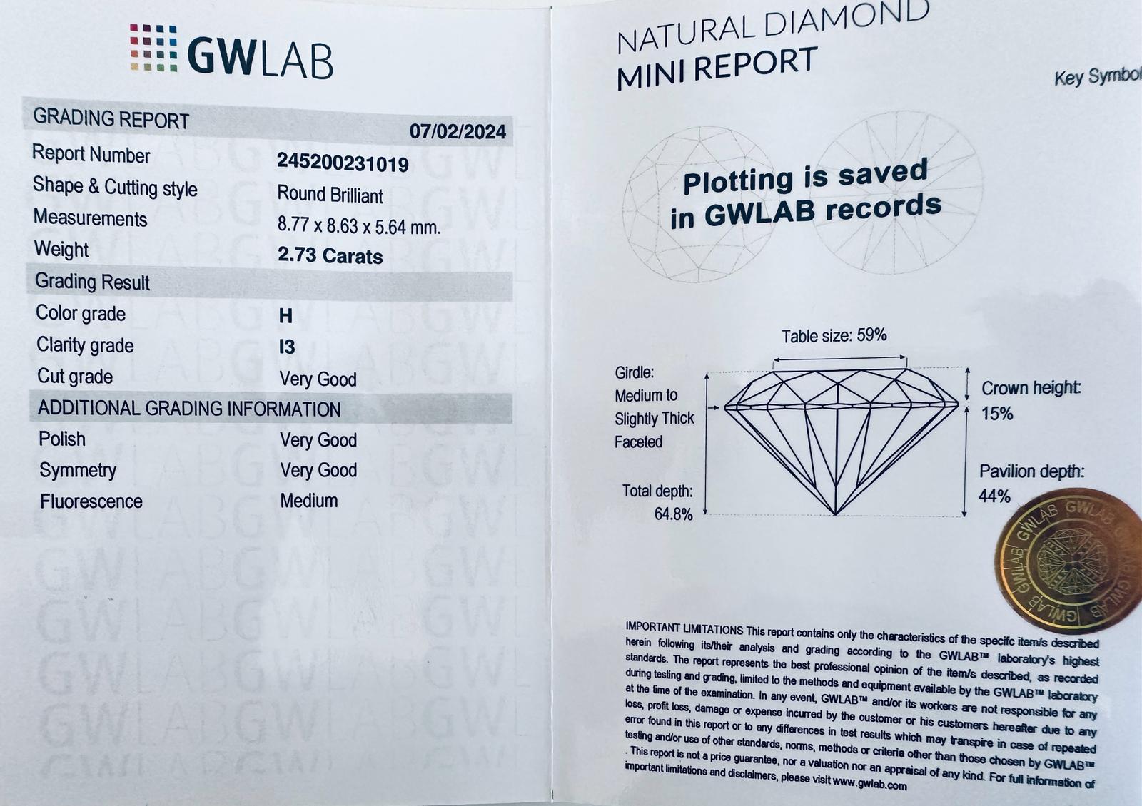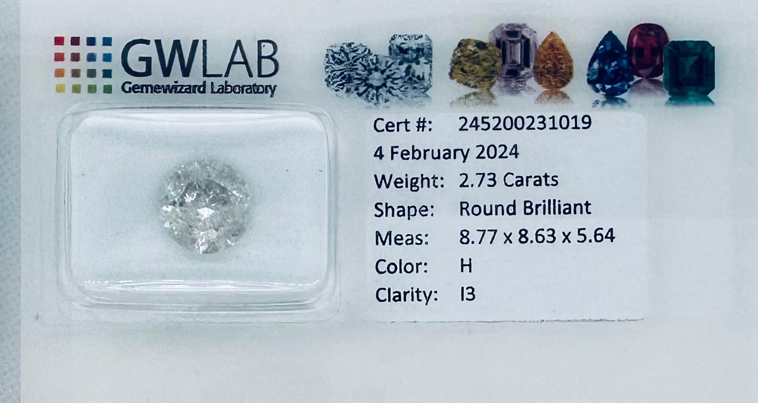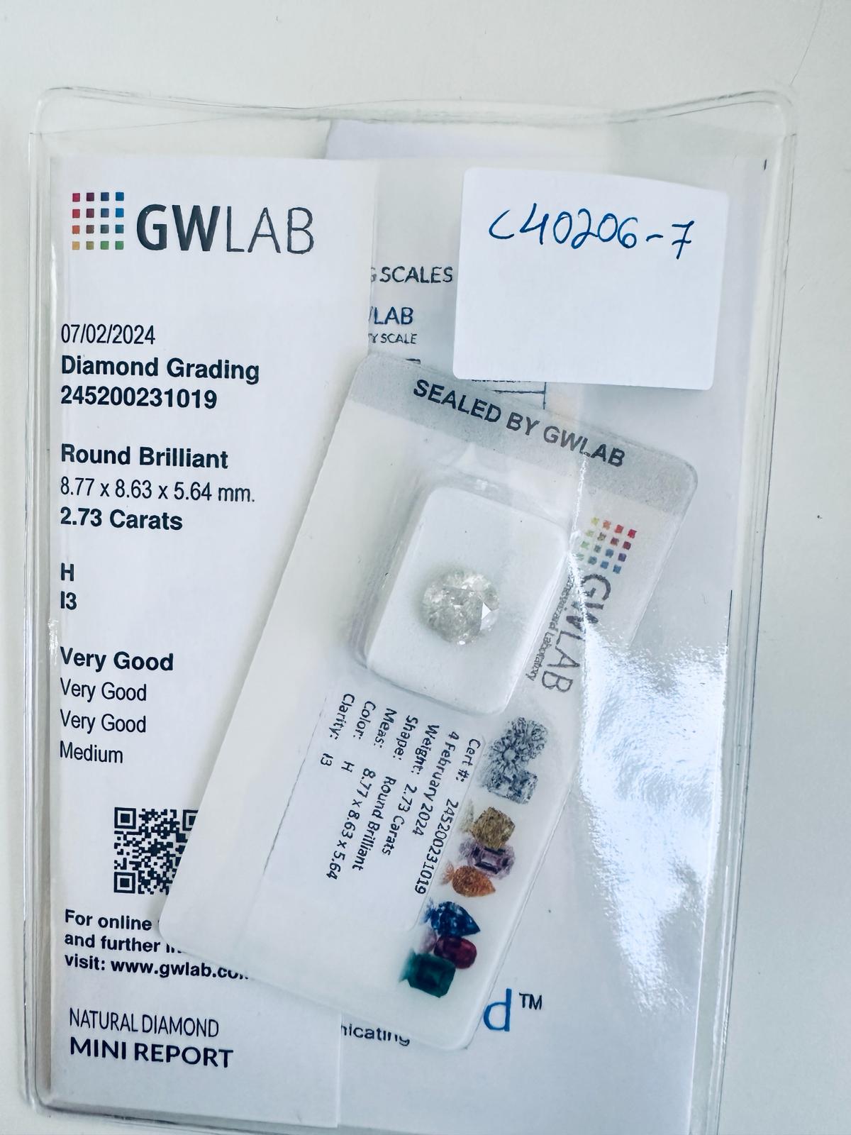DIAMANTE 2,73 CARATI COLORE H - PUREZZA I3 - TAGLIO BRILLANTE - CERTIFICATO GW - C40206-7