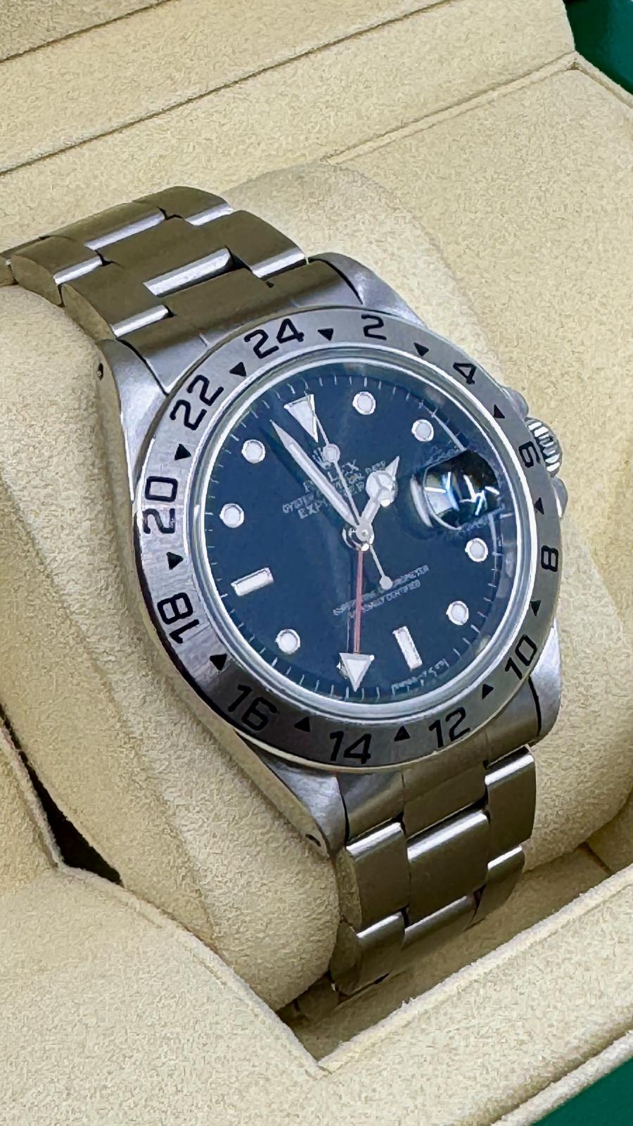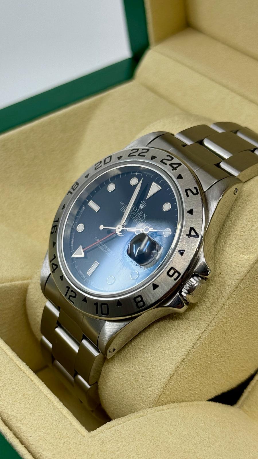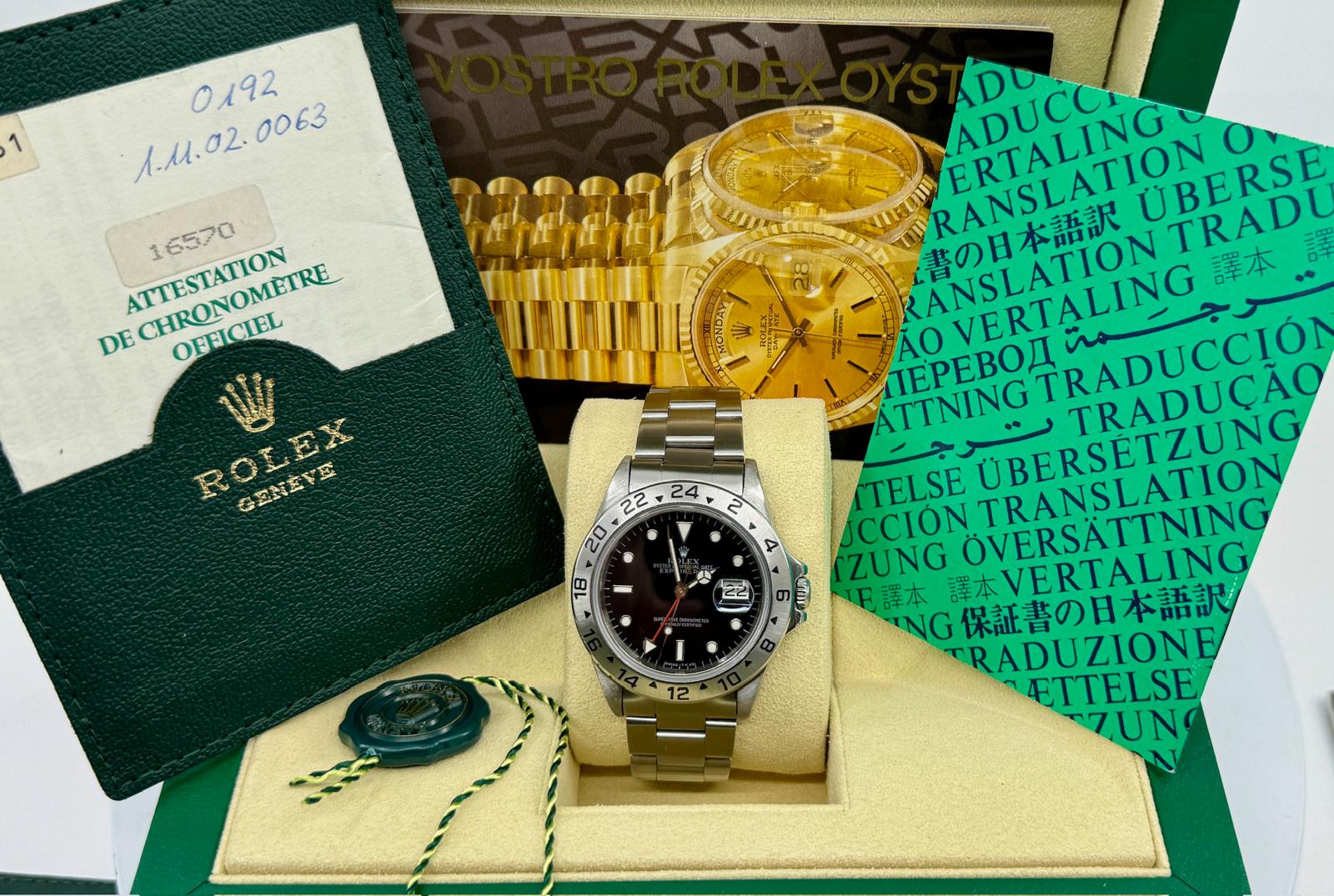 Marca Rolex Modello (Orologio) Explorer II Numero di referenza 16570 Carica Automatico Materiale della cassa Acciaio Materiale cinturino Acciaio Anno di produzione 1994 Corredodocumenti originali, no box Materiale della cassa Acciaio Diametro 40 mmImpermeabile 10 ATM Materiale lunetta Acciaio Vetro zaffiro Quadrante Nero Numeri sul quadrante Senza numeri Cinturino Materiale cinturino Acciaio Colore cinturino Acciaio Chiusura Déployante Materiale chiusura Acciaio
