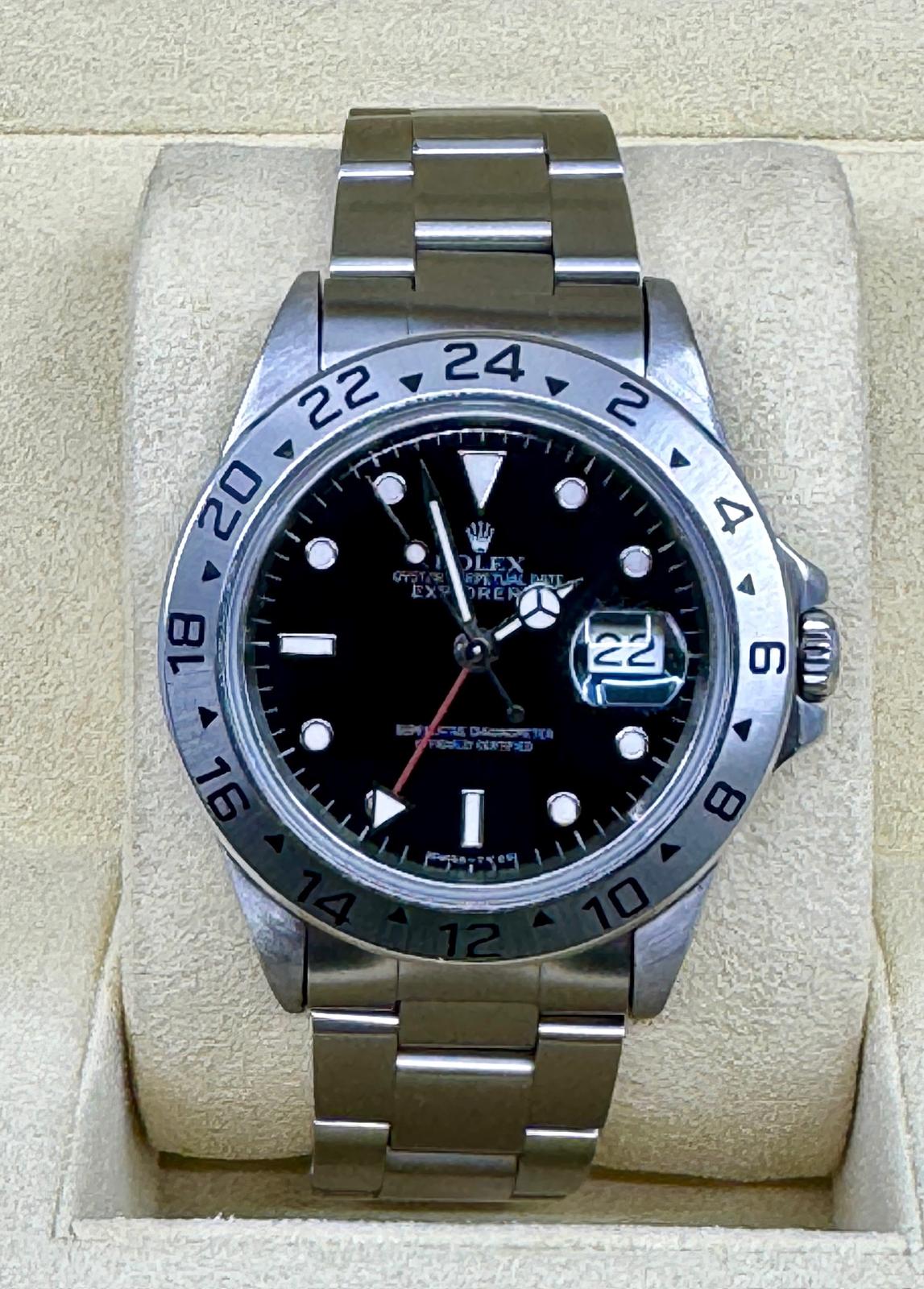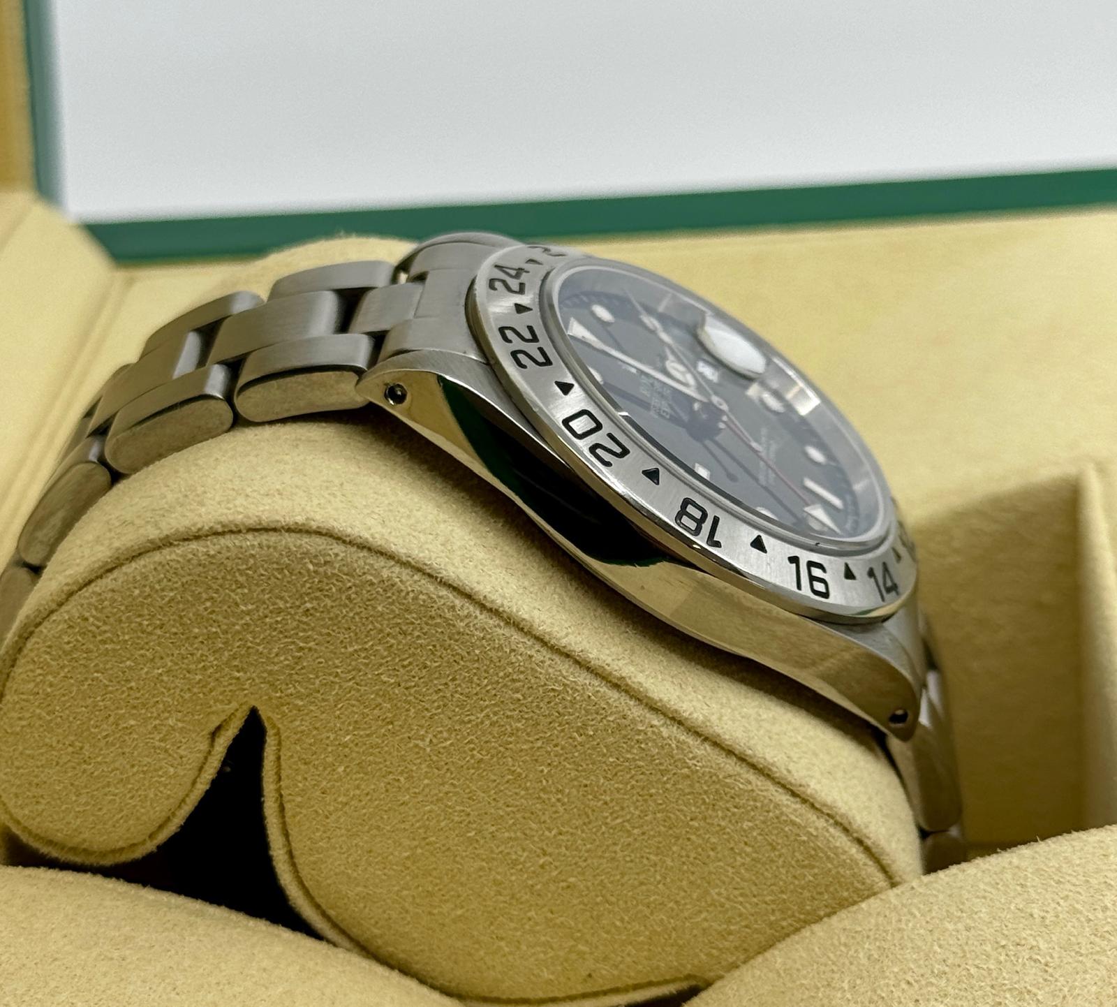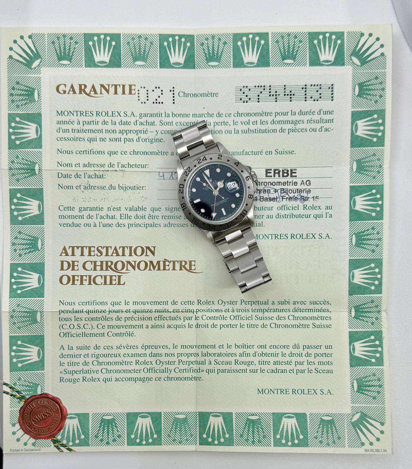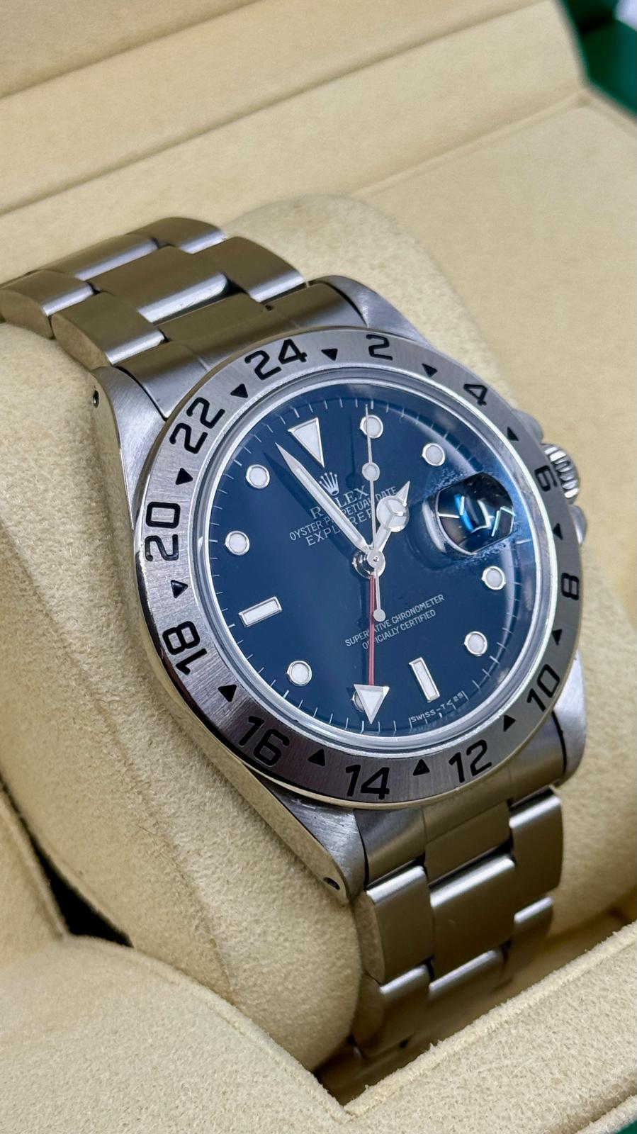 Marca Rolex Modello (Orologio) Explorer II Numero di referenza 16570 Carica Automatico Materiale della cassa Acciaio Materiale cinturino Acciaio Anno di produzione 1994 Corredodocumenti originali, no box Materiale della cassa Acciaio Diametro 40 mmImpermeabile 10 ATM Materiale lunetta Acciaio Vetro zaffiro Quadrante Nero Numeri sul quadrante Senza numeri Cinturino Materiale cinturino Acciaio Colore cinturino Acciaio Chiusura Déployante Materiale chiusura Acciaio