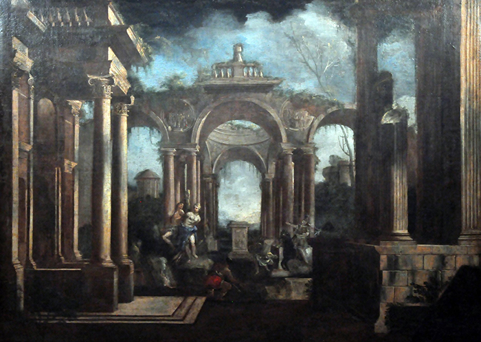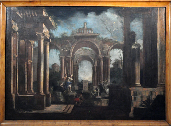 Ignoto del XVIII secolo Gerusalemme liberata olio su tela, cm 128x180