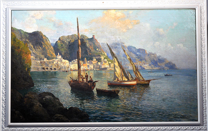 Brancaccio Carlo (Napoli 1861-1920) Paesaggio costiero olio su tela cm 76,5x124 firmato in basso a destra: C. Brancaccio