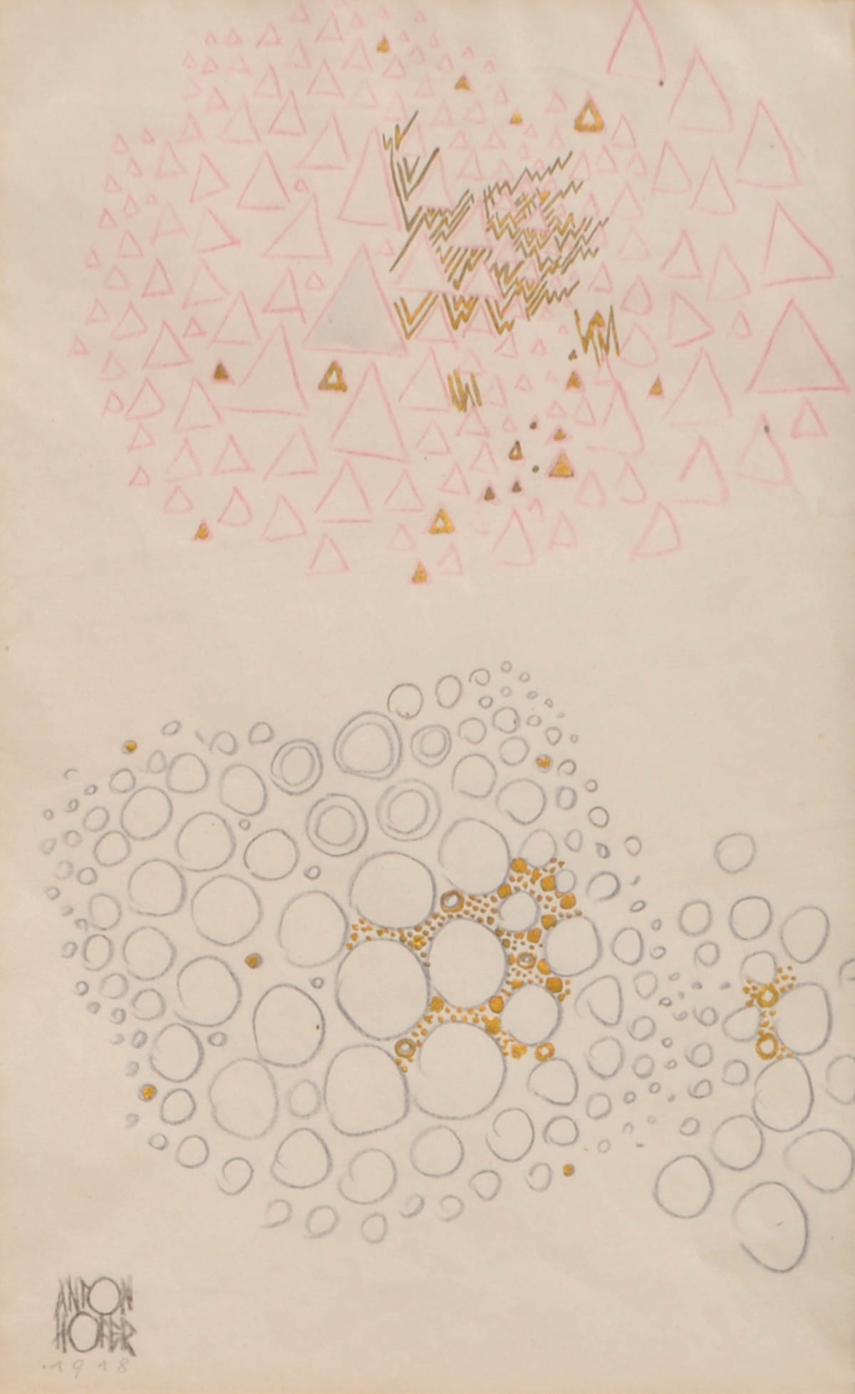 Anton Hofer (Bozen/Bolzano 1888 - Bozen/Bolzano 1979) 2 composizioni, 1918;Matita, matite colorate, vernice dorata, ciascuno 33 x 20 cm, in cornice