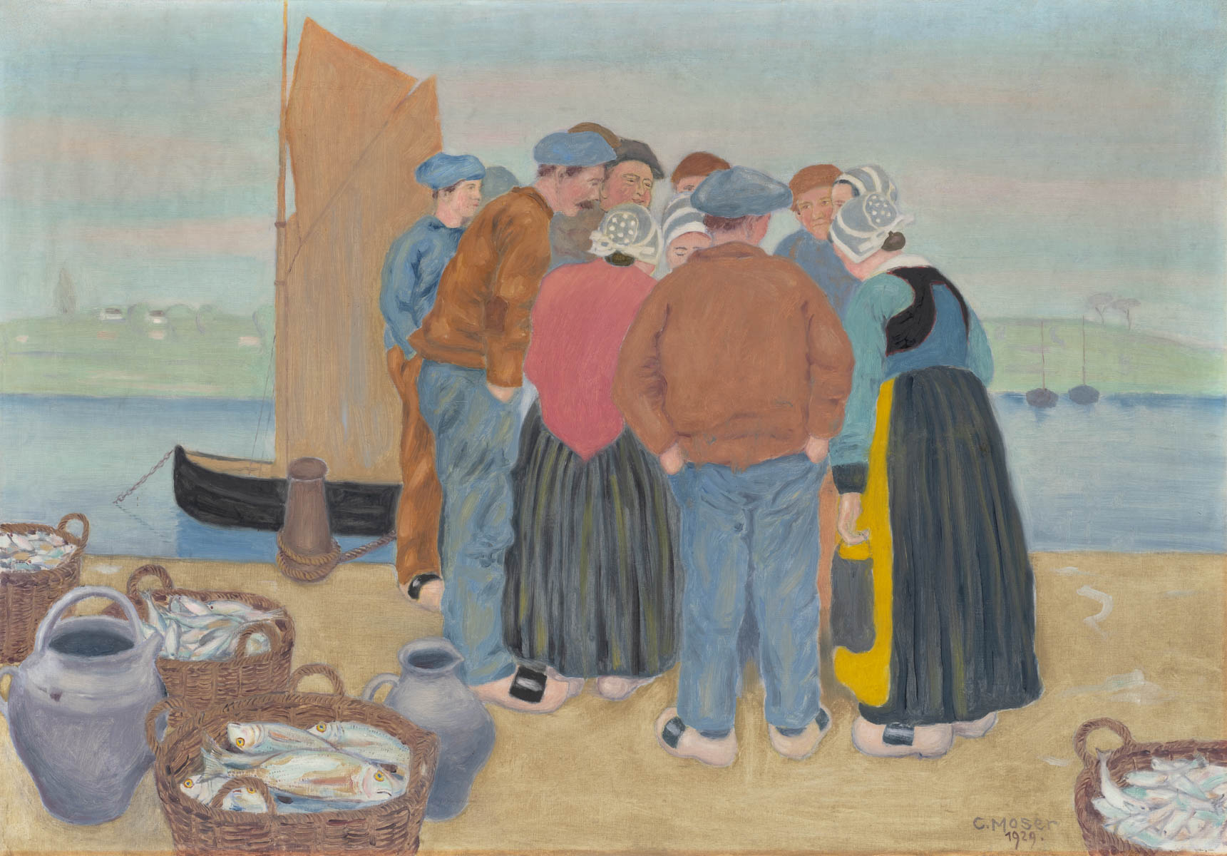 Carl Moser (Bozen/Bolzano 1873 - 1939) Scena di porto in Bretagna, 1929;Olio su tela, 80 x 114,5 cm, cornice d’epoca