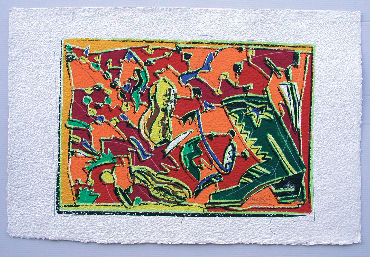 Nespolo Ugo Senza titolo, 2005 acrilico su carta spagnola, cm. 74x110 firmato in basso a destra, opera acquistata direttamente dall'artista