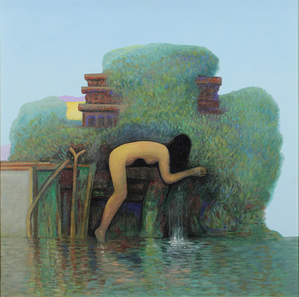 Picking John Water's Edge, 1993 olio su tela grezza, cm. 70x70 firmato, intitolato e datato al retro