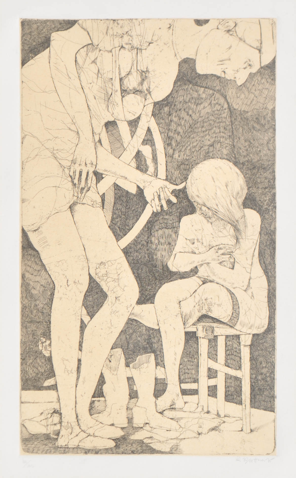 Karl Plattner (Mals/Malles 1919 - Mailand/Milano 1986) La lezione, 1975;Acquaforte, 47 x 28 cm (lastra)