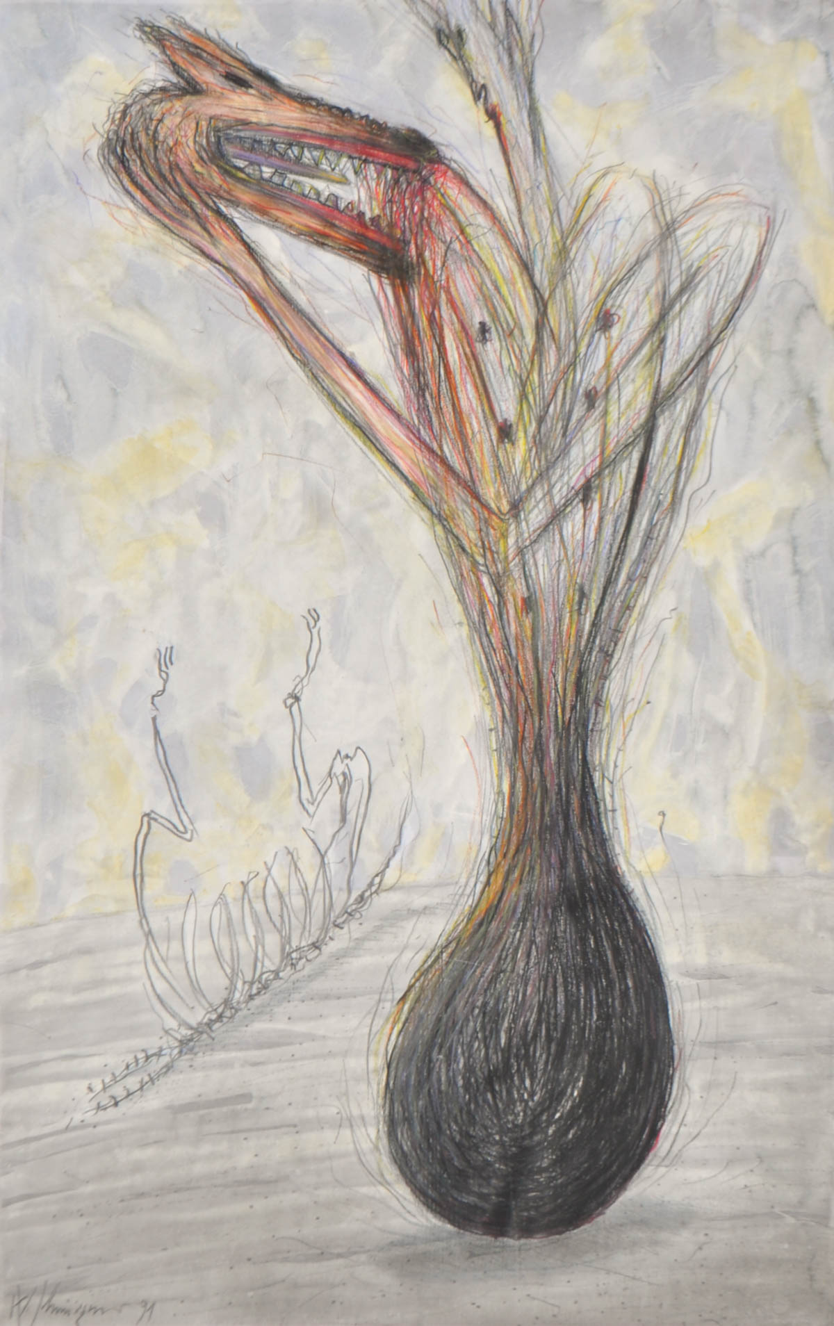 Walter Schmögner (Wien/Vienna 1943) L’ultimo morde i cani, 1991;Tecnica mista su carta, 93 x 59,5 cm, in cornice