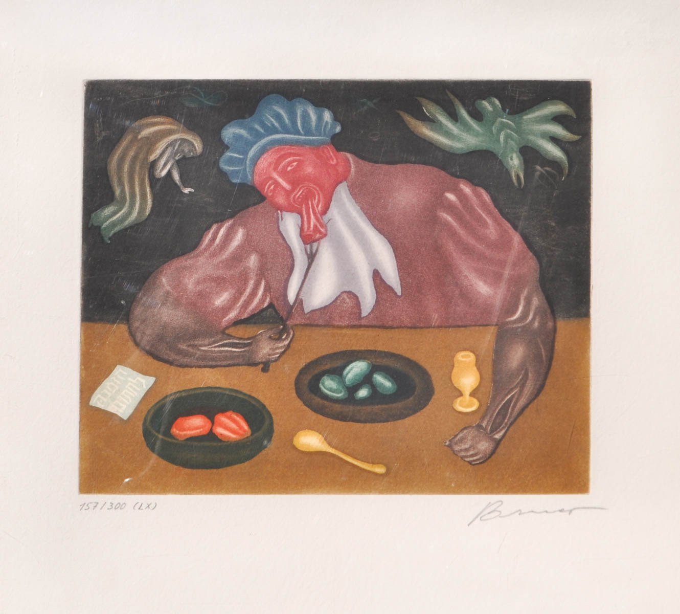Arik Brauer (Wien/Vienna 1929 - 2021) Messaggero di Baalshem, 1973;Acquatinta, 20,5 x 24,5 cm (lastra), 36 x 39,5 cm