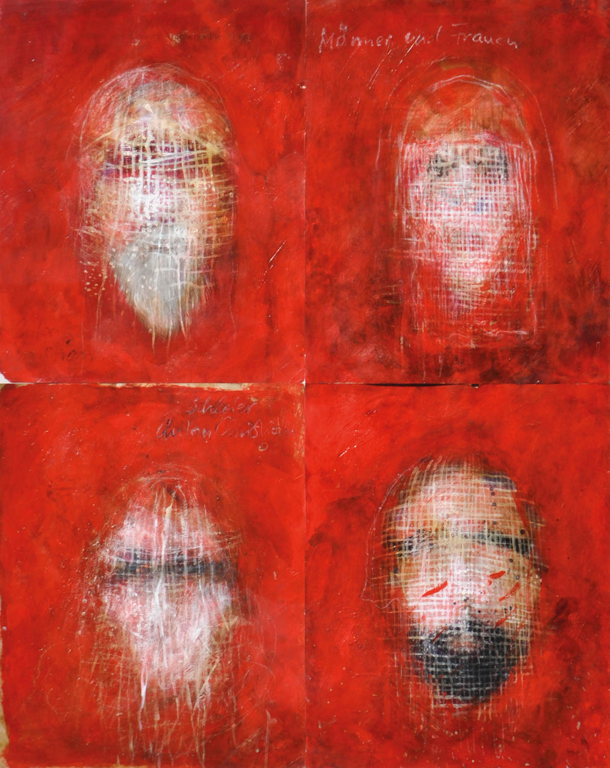 Anton Christian (Innsbruck 1940, lebt in Natters/vive a Natters) Veli, 2000 ca.;Tecnica mista su carta, 4 fogli singoli,