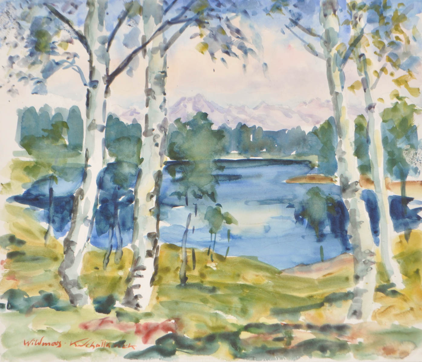 Karl Schattanek (Wien/Vienna 1890 - Innsbruck 1965) Wildmoos vicino a Seefeld;Acquerello, 36 x 42 cm, in cornice