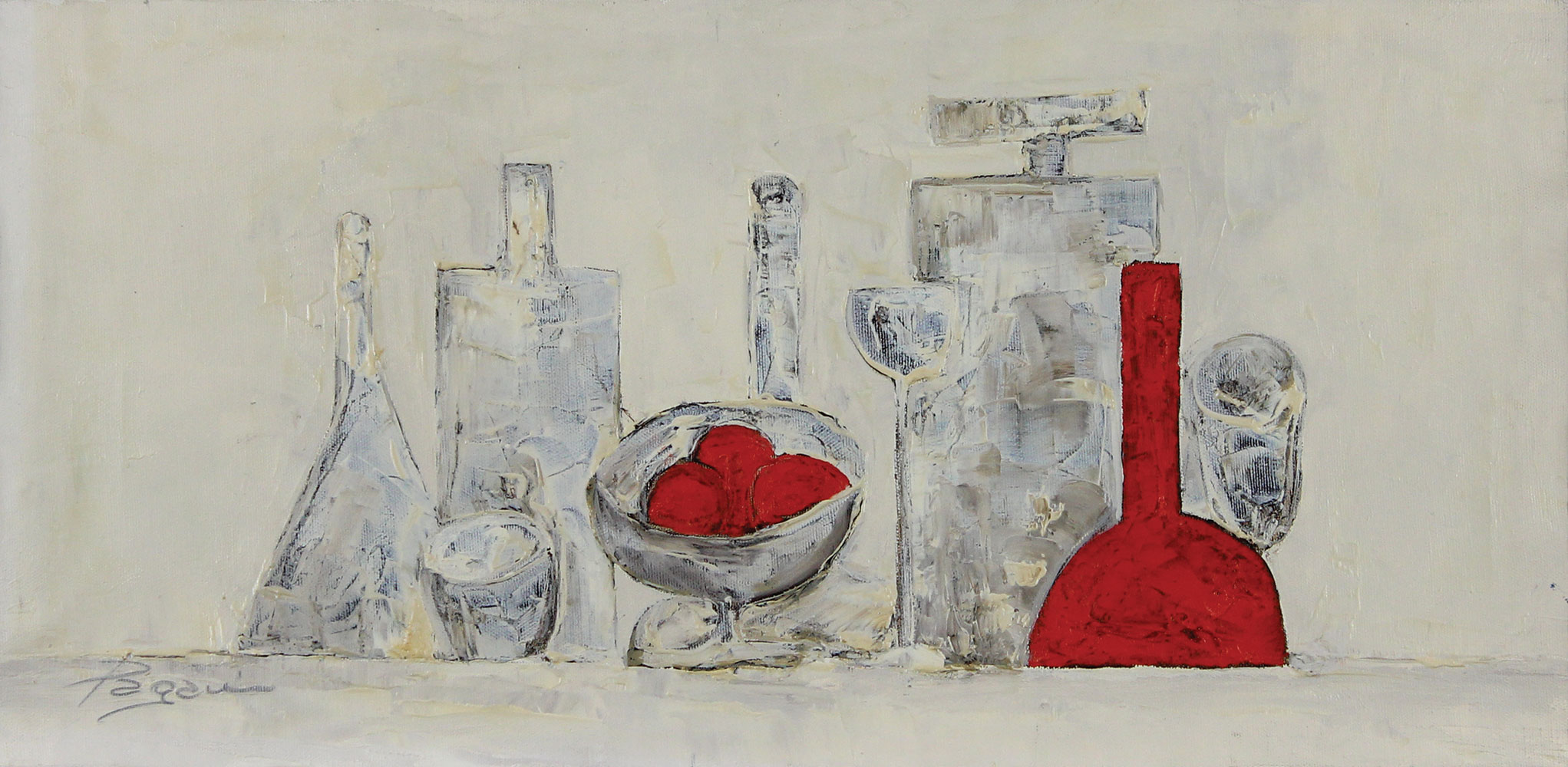 Pagani Gianfranco Bottiglie, 2002 olio su tela, cm. 30x60 firmato in basso a...
