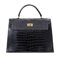 Hermès vintage Kelly 32 anni '40 in coccodrillo con metalleria dorata. Completa di clochette con chiave, lucchetto, libretto per la cura dei materiali e dustbag originali. Accompagnata da ricevuta del servizio post vendita Hermès per restauro. Buone condizioni.
