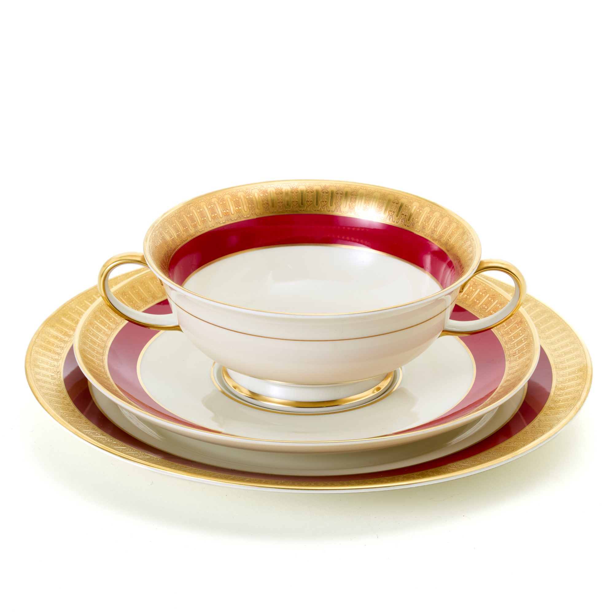 Servizio Rosenthal in porcellana composto da 12 tazze da brodo con 12 sottopiatti e 12 piattini.