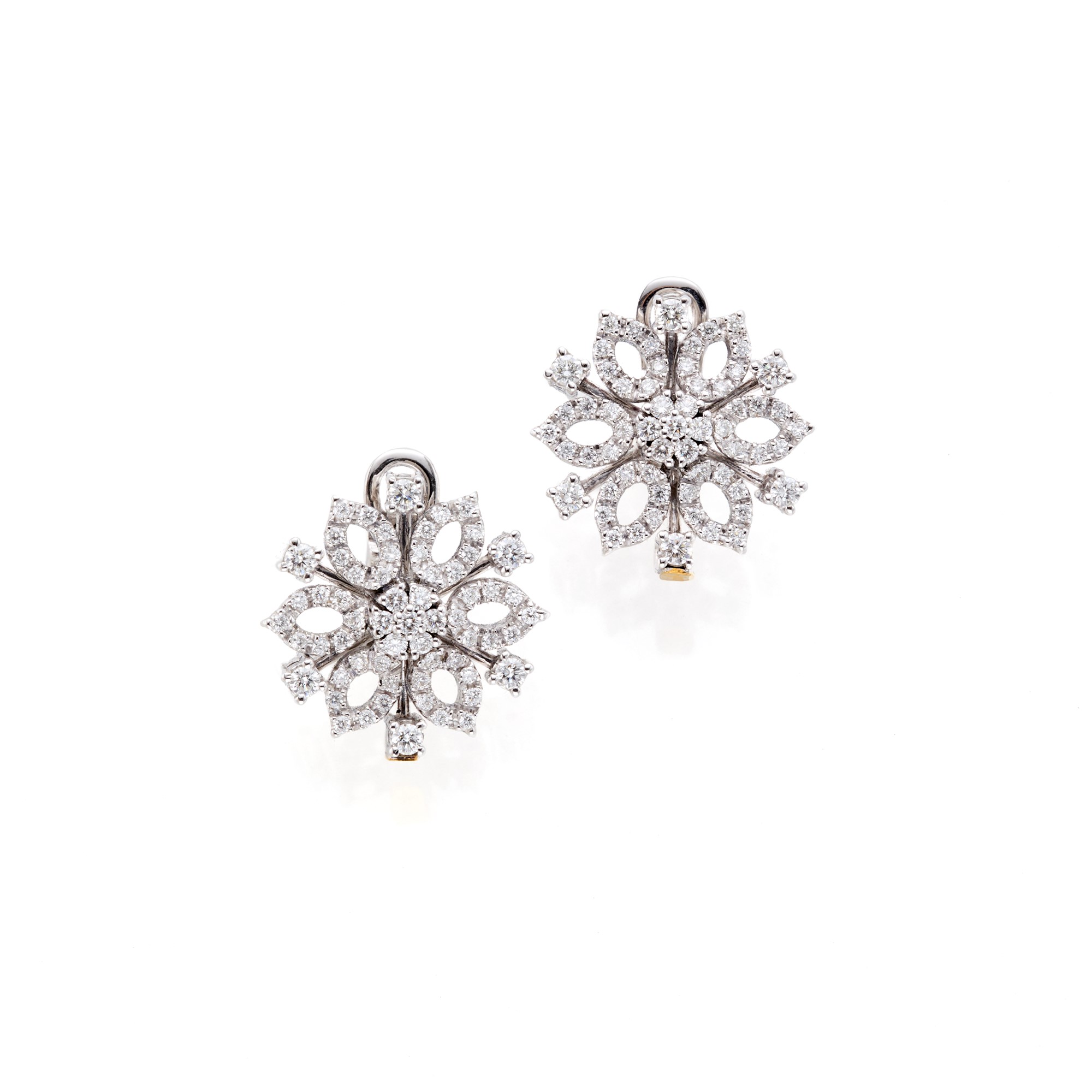 Orecchini Recarlo in oro bianco 18 Kt con diamanti rotondi per complessivi circa 1 ct.