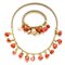 Micheletto Demi parure consisting of 18 Kt yellow and white gold semi-rigid necklace and bracelet, finished with orange coral charms.