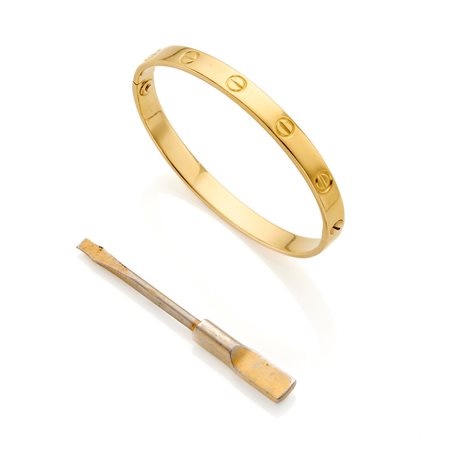 Bracciale Cartier Love anni '70 in oro giallo 18 Kt., firmato ""Cartier Aldo Cipullo 1970"". Completo di cacciavite originale.