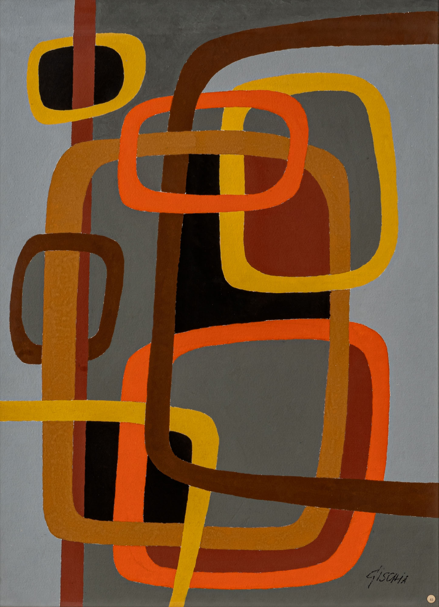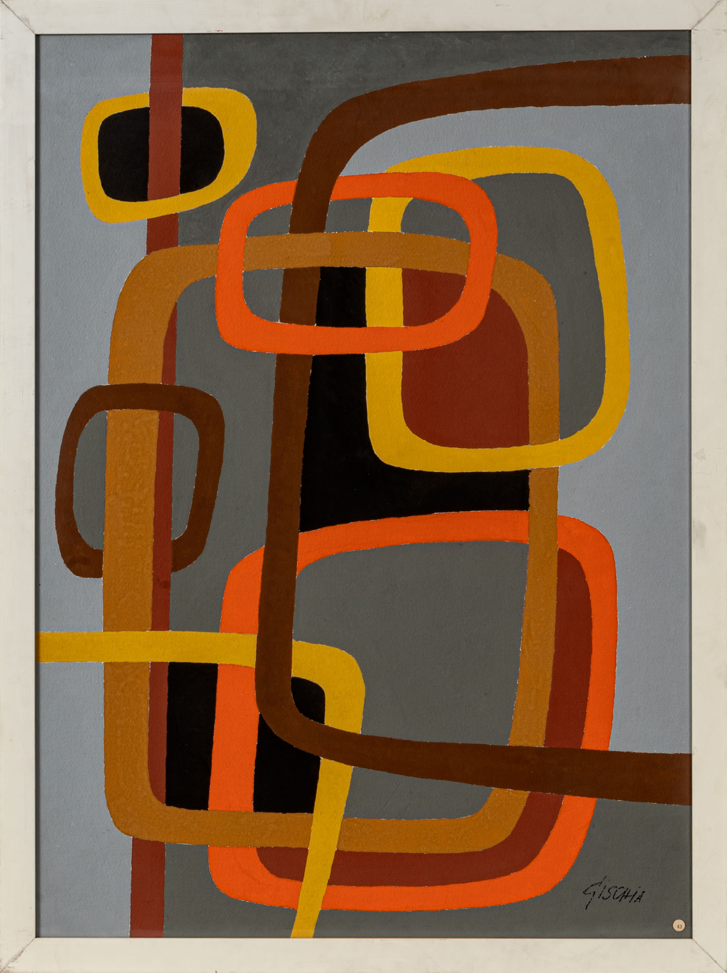 LÉON GISCHIA(1903 - 1991)Composizione geometricaTempera su carta77 x 56 cmFirmata in basso a destraPROVENIENZA:Galleria d'Arte Narciso, Torino (etichetta al retro)Collezione privata, Torino